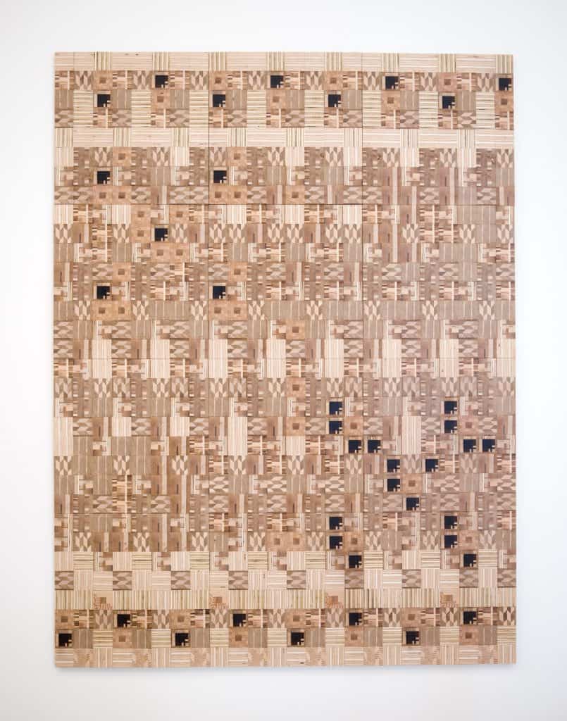 "Home Away From Home", 2017, 72" x 96" x 1.25" (W x H w D), Repurposed wood, wood glue, Foto: Jarvi Kononen