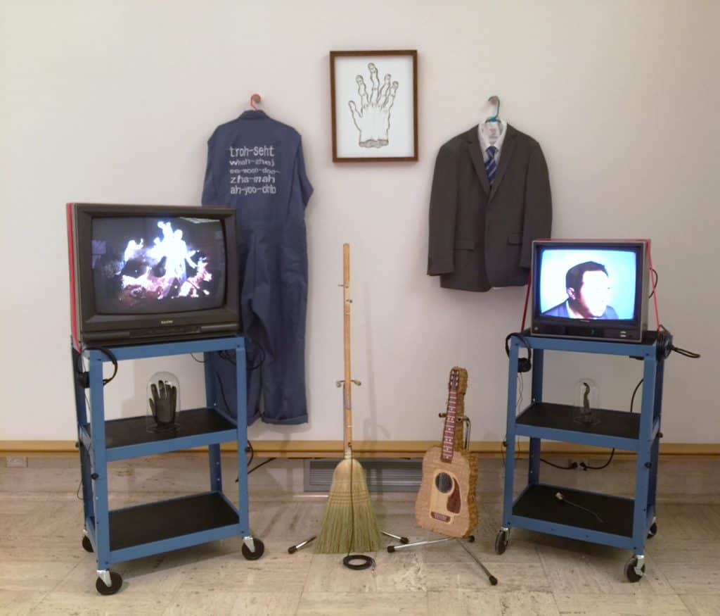 It is a sincere attempt to understand how language creates and changes meaning. For example, Spaundou has grown to the point that many of the words have layers of meaning only apparent to a “native speaker.” Spaundou is also not purely a linguistic exercise. The language is presented by a character that at times appears to be an evangelical preacher, at others a motivational speaker, and at others a failed businessman. These points of access help keep the viewer engaged with the possible meaning.