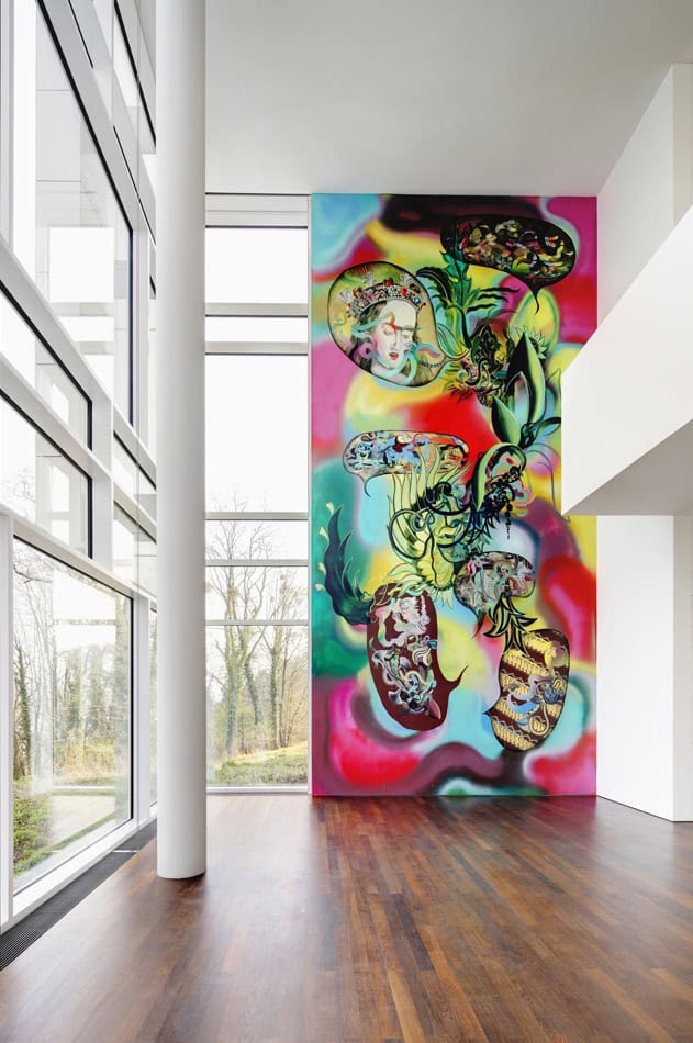 Kurvenreiche, sinnliche und unverfrorene Linien kennzeichnen viele von Hadassah Emmerichs Zeichnungen, Wandbildern und Linolschnitten. “Exotische” und “weibliche” Bilder – Blumen, Weinreben, Früchte, Frauenkörper und -gesichter – bevölkern ihre Bilder und Installationen, in denen ab und zu männliche Figuren wie Paul Gauguin und König Sigismund II. auftauchen. Literatur, von Gauguin-Biografien bis hin zu den Büchern des britisch-pakistanischen Autors Hanif Kureishi und der zeitgenössischen indonesischen Feministin Ayu Utami, erscheint in ihren Arbeiten als Text, der in komplexe Bildkompositionen eingebunden ist. Emmerich, die in den Niederlanden aufgewachsen ist und heute in Berlin lebt, hat deutsche, chinesische und indonesische Vorfahren. Indem sie auf ihre eigene Geschichte und Erfahrungen mit dem Kolonialismus zurückgreift und in die Rolle von historischen Persönlichkeiten schlüpft, sucht sie nach den Spuren des Orientalismus in der heutigen Gesellschaft. Emmerich verknüpft Erzählungen und Bilder miteinander, die uns mit den Geschichten und heutigen Darstellungen des “Anderen” vertraut machen. (Ruba Katrib)