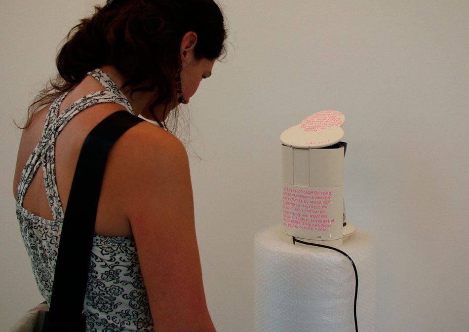 [Libia Castros und Ólafur Ólafssons] Casa Beyond besteht aus drei Teilen: einer sozialen Intervention, einer Skulptur und zwei Lesungen. Als erstes mieteten die Künstler zugunsten einer Familie Asylsuchender ohne Papiere drei Monate lang ein Haus in Leidsche Rijn an. Darüber hinaus machten sie keine weiteren Angaben zur Identität der Asylanten, ihrer Herkunft oder ihrem genauen Standort. Im Ausstellungsraum stellten die Künstler bloß ein simples Gerät aus: einen elektrischen Kaffeekocher auf einer Rolle Luftpolsterfolie. Ein einfacher, kurzer und knapp formulierter Text auf dem Kaffeekocher […] erklärte das Projekt.