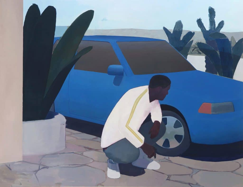 Manuel Stehli’s paintings center around landscape and human interaction. The references used are often seemingly trivial moments which, at the same time, have the potential of turning into something archetypal through the process of painting. In other works the reverse takes place: A dramatic, loaded image may become compromised as it gets worked over, eventually succumbing to the formal concerns of the painting. It is this juggling of meanings and expectations that interests Stehli. Often references only make it half-way into the work, undergoing a process of dismantling and recombination along the way. What is being sought are changes – often subtle and unintended – that put into question the entire dynamic of a scene without concealing its origin. The result is what could be called a state of limbo, which applies to both the narrative and the formal content of the paintings.