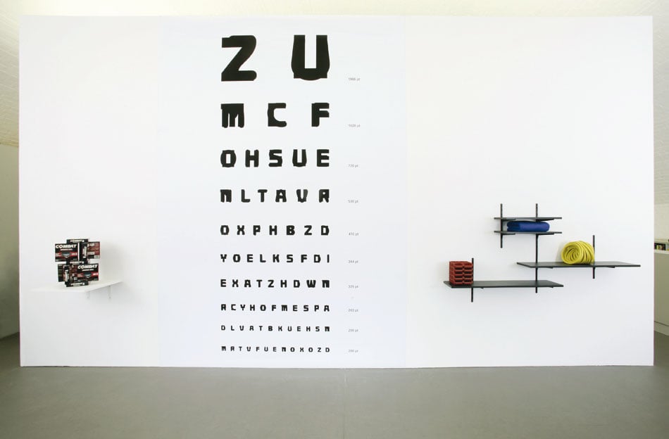 […] Einordnen, arrangieren, selektieren. Eliminieren. Aber auch bewohnen und ansässig sein. Einen gewissen Platz finden, einen Platz halten, am Platz bleiben. Das Ziel aller Dinge ist eine Schublade, eine Höhle und ein Loch. Wir selbst sind das Ziel der Dinge. Wenn die Gewohnheit, die innere Organisation, die Schablone ist, die unsere Existenz passend macht (W. Benjamin), dann sind unsere Existenzen größtenteils die Kreationen dieser Schablone. Religion, Kultur, Werbung, die am Menschen interessiert sind, die keine Gelegenheit auslassen, ihm einen Ort zu zeigen (du solltest bei uns sein) aber den Raum zwischen den Menschen leer lassen – einen Raum, den sogar Politiker praktisch verworfen haben, eine schockierende Wahrheit! Mit dem Bezug zum Banalen (der Effekt des Wortwörtlichen, die Behandlung von Vorurteilen als Zeichen der ‚Zusammengehörigkeit’, das Misstrauen gegenüber Urteilen und das Verstehen der Doppelfunktion – dekorativ und funktional – von Kunstobjekten) verpasst Mathieu Mercier niemals die Gelegenheit auf diesen Missstand hinzuweisen und ihn darzustellen.