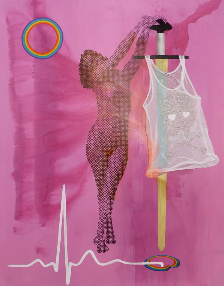 So sind Quints architektonische Konstrukte beseelt von ihrem eigenen Untergang – der Turm zu Babel, eine aus der romantischen Tradition hervorgegangene Ruine, eine Ölpest-artige Woge von Autos, die auf der Leinwand klebt. Da ist Stürzen und Abdriften. Das Werk verkehrt die Klischees von Unschuld und Leichtigkeit. Zarte Spitze für eine chemische Verseuchung, Glitzerpailletten für Sperma, eine Werbetafel (Mega Value) für eine von Zerstörung bedrohte Landschaft – ist das einzig Wunderbare das Leben selbst? Die Existenzbedingung des Künstlers wie des Menschen, dieses „nahezu Nichts, platziert zwischen dem Unendlichen und dem Nichts“ beschäftigt Robert Quint.
