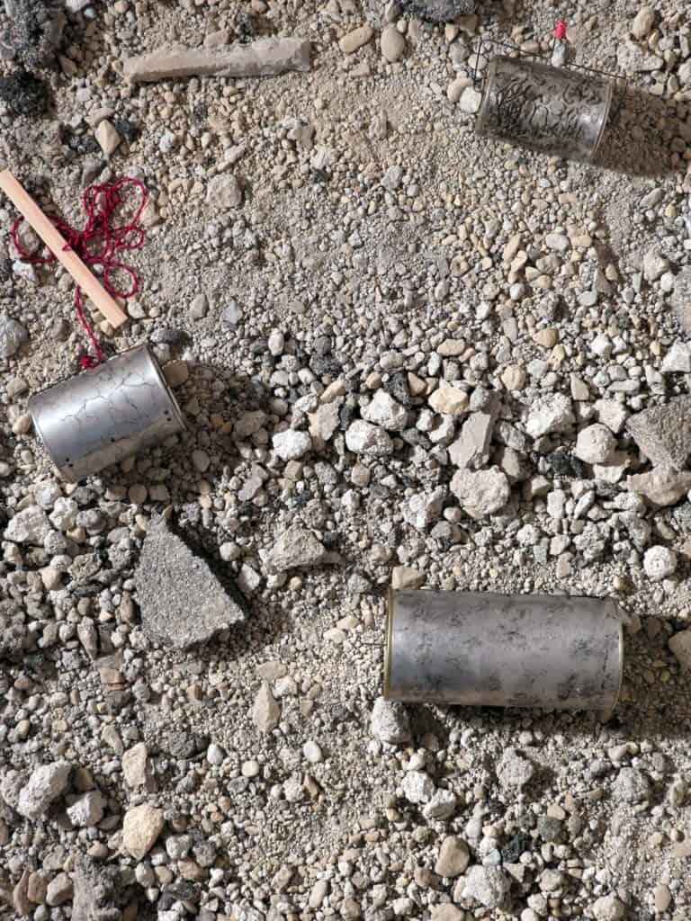 Refuge for Stationary Vehikels, Geätztes Aluminium, Blechdosen, Teer, Holz, Schutt von einer Straßenbaustelle, Größe variabel, 2013