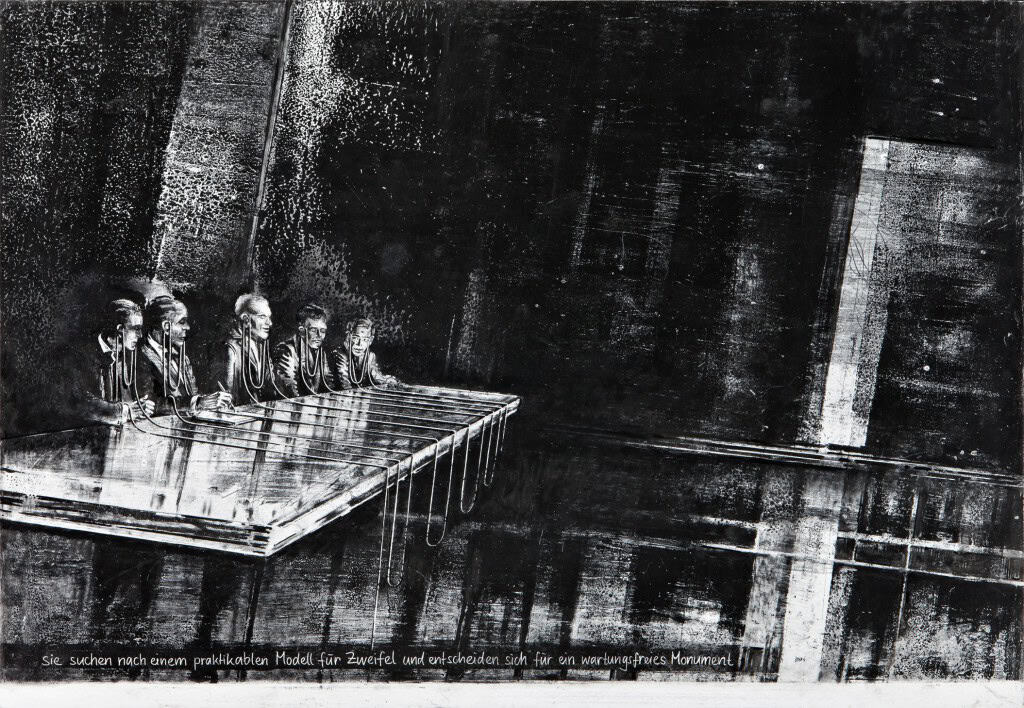Die Unmittelbarkeit des Zeichnens ist Voraussetzung für die gleichzeitige Begehung und Beobachtung der Übergänge zwischen Wahrnehmen und Denken. Auf diese Übergänge habe ich es abgesehen. Ich arbeite mit Bildern als primärem Erkenntniswerkzeug. Dies nicht im Hinblick auf einen ruhenden Sinn, sondern auf einen Sinndrall. Ich suche Alternativen zum statischen Sinnbegriff und stehe in der Untersuchung der Grenzen der Untersuchbarkeit da, wo die Komplexitätsreduktion, die jeder Untersuchung innewohnt, in der Strömung ihren Halt verliert. Hier kann ich dem Verhalten von Bedeutung in prekären und exponierten Zonen zuschauen. Es ist eine zeichnerische Suche nach Situationen knapp vor oder neben dem entspannenden Zustand der Kausalität und die Arbeit mit den Aufbau- und Zerfallsenergien von Bedeutungen. Ich arbeite mit der affirmativen Qualität, welche gegenständliche Bilder primär ausstrahlen und suche bildhafte Klarheit als informationsversagendes Material: weder funktionale Informationsverdichtung noch Nonsens-Verbindung, sondern ein dringender Zugang auf eine Frage, die ihrer Konsistenz und Größe wegen nicht direkt und final erschlossen, sondern scharf umspielt werden kann.