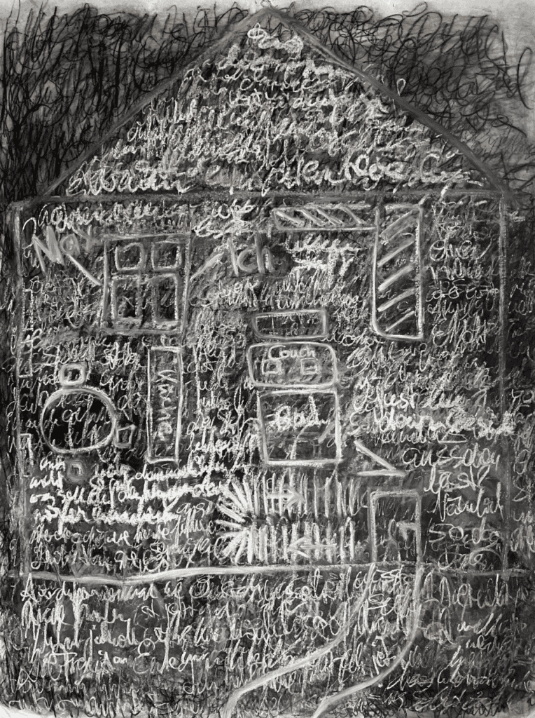 Sascha Abel (*1984 in Bogotá, Kolumbien; lebt und arbeitet in Berlin) geht in seiner zeichnerischen, malerischen und photographischen Arbeit der Frage nach, wie sich Erinnerungsbilder im Laufe der Zeit verändern. Von besonderem Interesse sind dabei für ihn die Erinnerungen von bestimmten biographischen Orten und Räumen aus der Kindheit. Dabei bedient er sich an der Ikonographie objektiver Raumdarstellungen und überlagert diese bis zur Unkenntlichkeit. Dabei entstehen vibrierende Psychogramme von emotional aufgeladenen Architekturen.