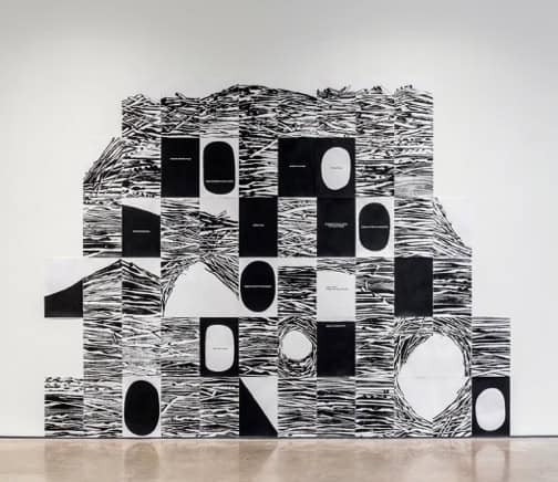 Across text, painting, film and sound, Fauerso’s work luxuriates in a coiled chaos, telescoping from the whimsical, joyful intrigues of family to the dark, cresting tides of a world gripped by fear and panic. One series of work spaces surreally didactic poems with Fauerso’s monochrome paintings. Some of the text from the poems comes from things said by her children during make-believe games. As Fauerso states, “When children play and make-believe, the assigning of meaning and value is incredibly fluid. There is an elasticity to the naming of things.” These sequences are simultaneously instructive and disorienting, and much of the meaning alights and connects through the process of arranging. Fauerso’s work is inspired by her life, family, what she reads and what is happening in the world. Fauerso is keenly aware of the gap between these streams and the way they lattice together.