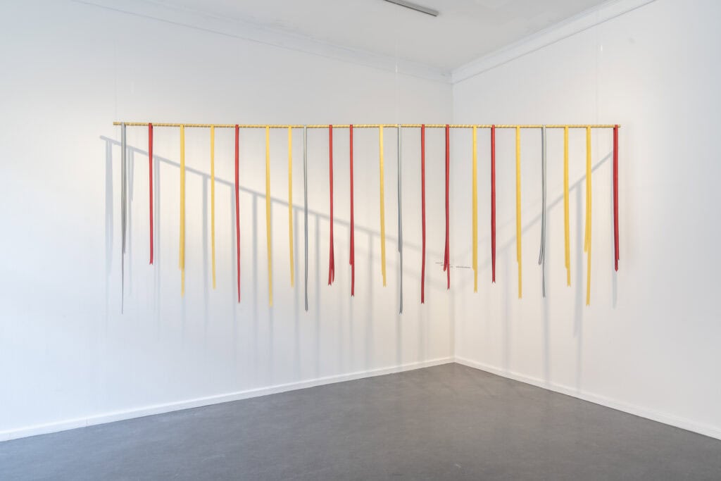The sculptural Thresholds that Melanie Jame Wolf has created for the exhibition are located on the windows and in the foyer of Künstlerhaus Bethanien – a space that is architecturally characterized by the curved door and the central staircase. In the midst of these existing forms, the works deal with the location and take up its transitions, thresholds and movements. People leave. Traces stay. What stories can a staircase, a door and a threshold tell us about transitions, attributions and talking about art?