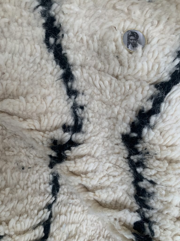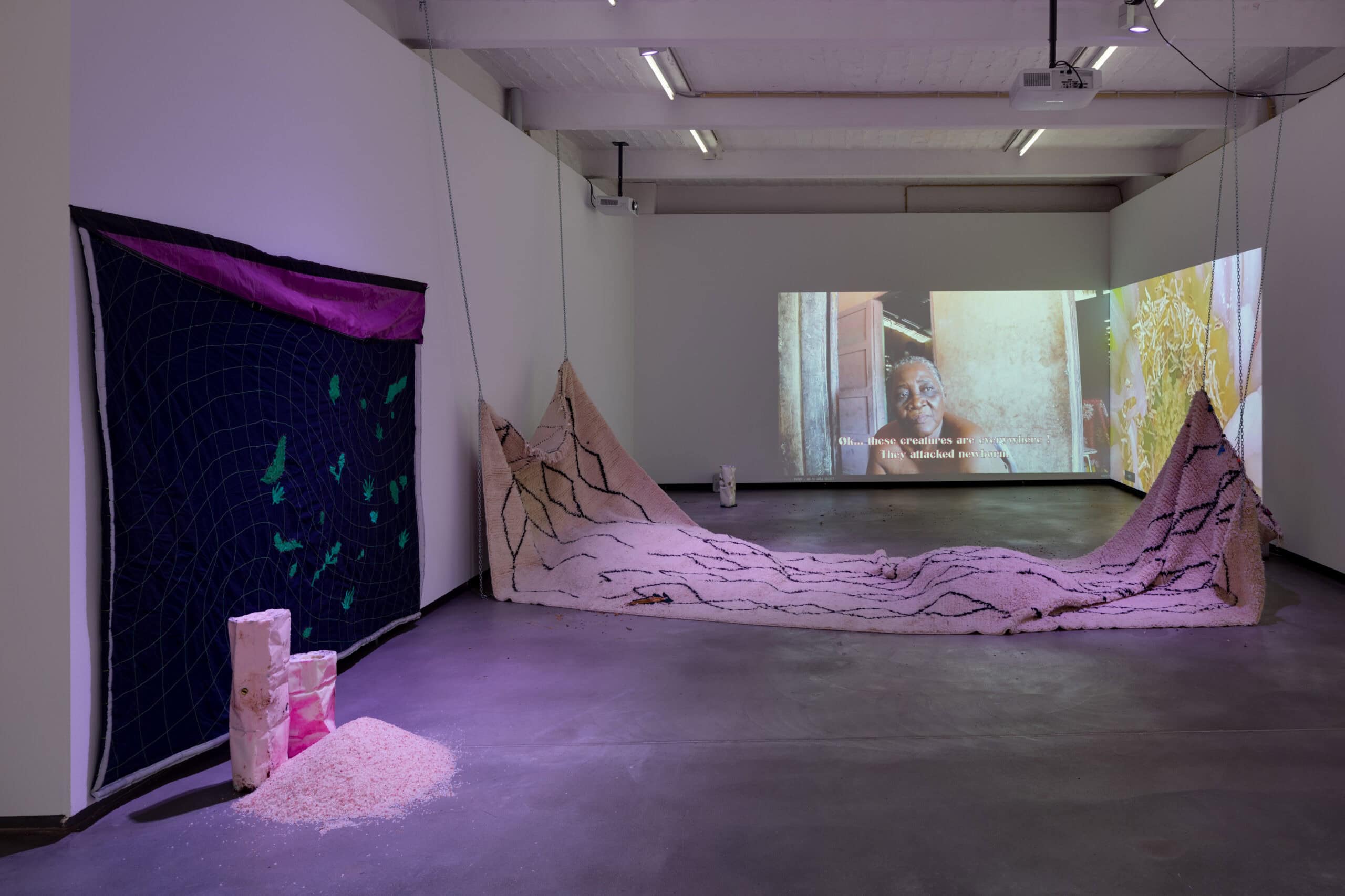 The installation, presented for the first time at Künstlerhaus Bethanien, presents itself as a safe space imagined for selfcare, and caring for others. One is invited to drink soothing concoctions, or to receive healing energy … Beyond the two videos, the visitor is invited to rest on “Lie close to your ancestors” (2022), a monumental carpet woven by women in the Berber mountains, on which CHOISNE has pinned small portraits of inspirational figures. In an other room, the video “Ahuehuete 11111” (2022) introduces the visitor to a bimillennial tree planted in Santa Maria de Tule in Mexico, filled with an incredible energetic and vibratory force.