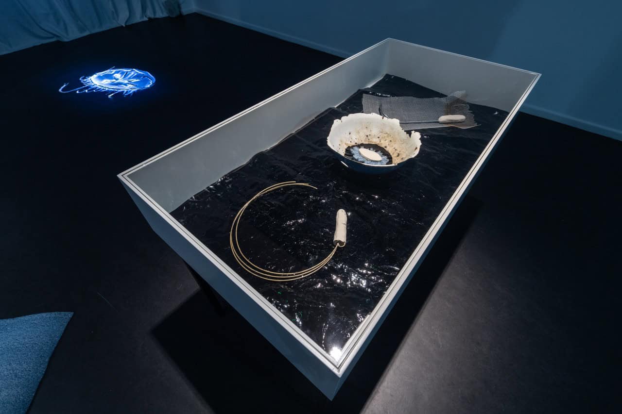 Waters, this deep, curated by Linnéa Meiners, is the fifth chapter of the Becoming B series at Künstlerhaus Bethanien. Nnenna Onuoha and Om Bori explore the proximity of Künstlerhaus Bethanien to the Landwehr Canal in their work.