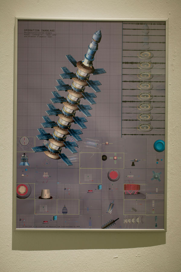 Operation Swanlake is the documentation of a research project by the London Institute of Militronics and Advanced Time Interventionality (IMATI) and a colleague involved in this, Rosalind Brodsky, which Suzanne Treister is now presenting to the Berlin public. IMATI is a government institute which develops technologies for time travel and tests their use for military purposes.