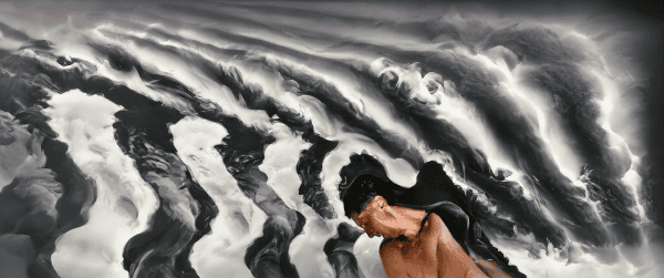 In the experimental film Hysteresis, Seidel’s analogue drawings and digital processing merge with the performance of queer dancer Tsuki, whose movements improvise between Ballet, Butoh and Berlin club culture. In a fusion process, her image is recorded, fed back through Seidel’s devices and then projected onto her body. In a final step, the sessions are edited and dissolved by machine-learning strategies into a constant flow of pulsating images and folded spatial configurations. The resulting Muybridgean silhouettes, baroque textures and bursting painterly structures fluctuate between the second and third dimensions, unfolding free-floating gestures that unhinge the laws of nature. Meanwhile, delicate abrasions of the pictorial frame build bridges into contradictory concatenations of reality. The soundtrack by Oval (Markus Popp) incessantly corrodes this web of concrete associations, threatening to dissolve the remaining fragile points of reference.