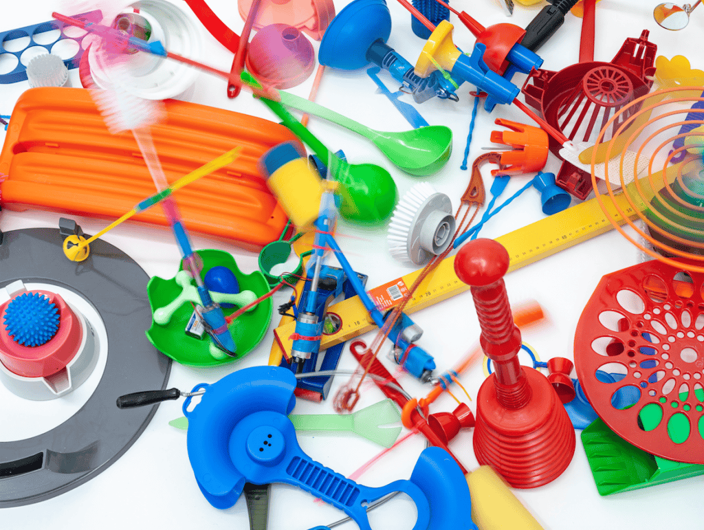 Tsuyoshi Anzai uses objects that characterize and structure our natural environment, our homes, our toolboxes or kitchens to create large-scale installations, kinetic sculptures and other beings. In his solo exhibition “Grounded” at Künstlerhaus Bethanien, the audience is confronted with enlarged packaging that one finds randomly in public space, now installed on the exhibition floor. Hybrid kinetic sculptures consisting of sponges, brushes, cleaning tools and other objects populate his exhibition space. They are loud, colorful, motorized, and move through the exhibition as if they were living entities trying to attack their surroundings. The playful change of perspective and the distorted scale of the objects in the space contrast with the size of the visitors.