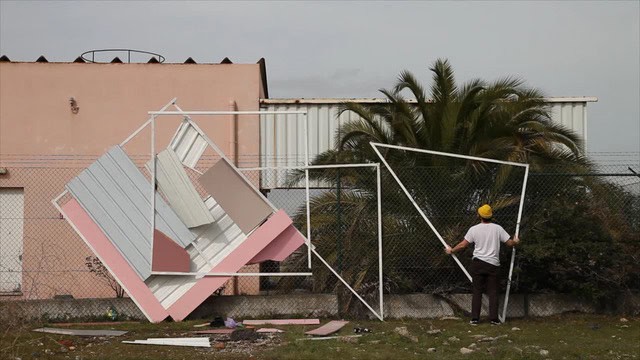 One of the characteristics of the Anthropocene is the increasing functionality of urban spaces, even unused niches are continually sealed with tar and concrete. Berlin-based artist Clemens Behr creates ephemeral artworks from found as well as everyday materials and inserts them as an irritation in uniform civic scenarios. These collisions in color and form are never finished, always ready to be reconfigured or even abandoned. Usually captured in still images, the film “Barreiro” shows two site-specific installations in the making, which are inserted as barbs into the desolate environment of a Lisbon neighborhood.