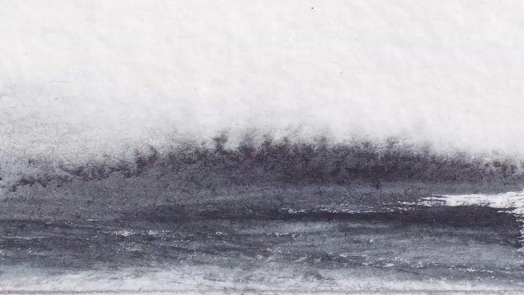 The minimalist experimental film “Imaginary Landscapes” by Mykyta Lyskov sequences hundreds of small drawings in a flickering rhythm. From this seemingly steady horizontal movement emerge infinite landscapes of ink stains, colour smears, pencil marks and paper tear edges that drifts past the viewer. Due to the high speed and the unsteady movement of the image, the fine-grained textures take on three-dimensional qualities and evoke melancholic proto-landscapes that oscillate between real and imagined abstraction.