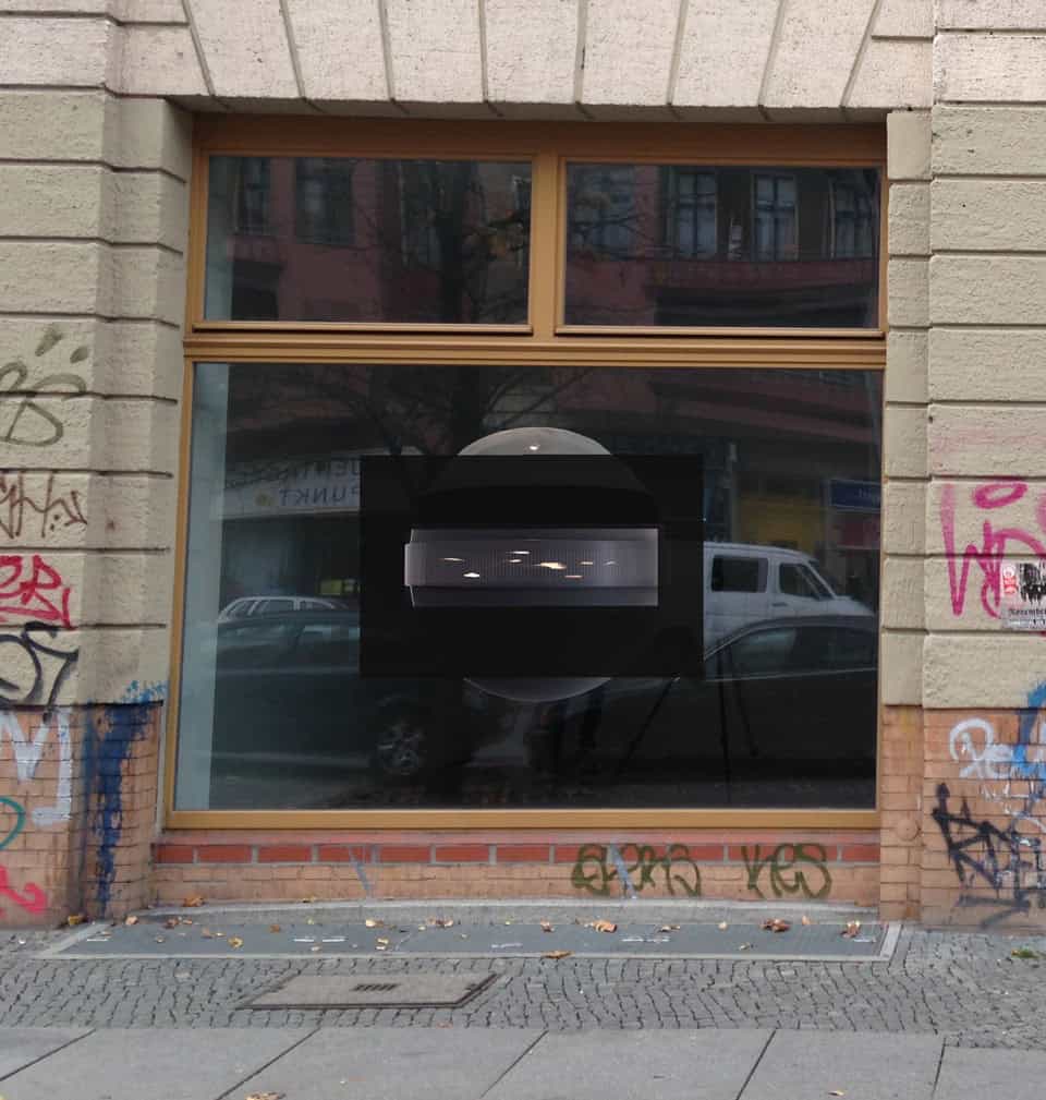 Among the latest sculptural works of Vogl, presented at abc – art berlin contemporary in 2013, is Sphere I – Wolkenfilmmaschine – a cloud film machine – where Vogl combined the early film techniques of black stripes and slits with a rotating ball and a mobile. Like many of his time-based works Sphere I – Wolkenfilmmaschine is playful and creates its own magic without ever hiding the simplicity of its creation. Thus in difference to the regular form of presentation of the series IM SCHAUFENSTER Ulrich Vogl presents the medium ‘film’ not on a screen but as a sculpture, that is a film by itself.
