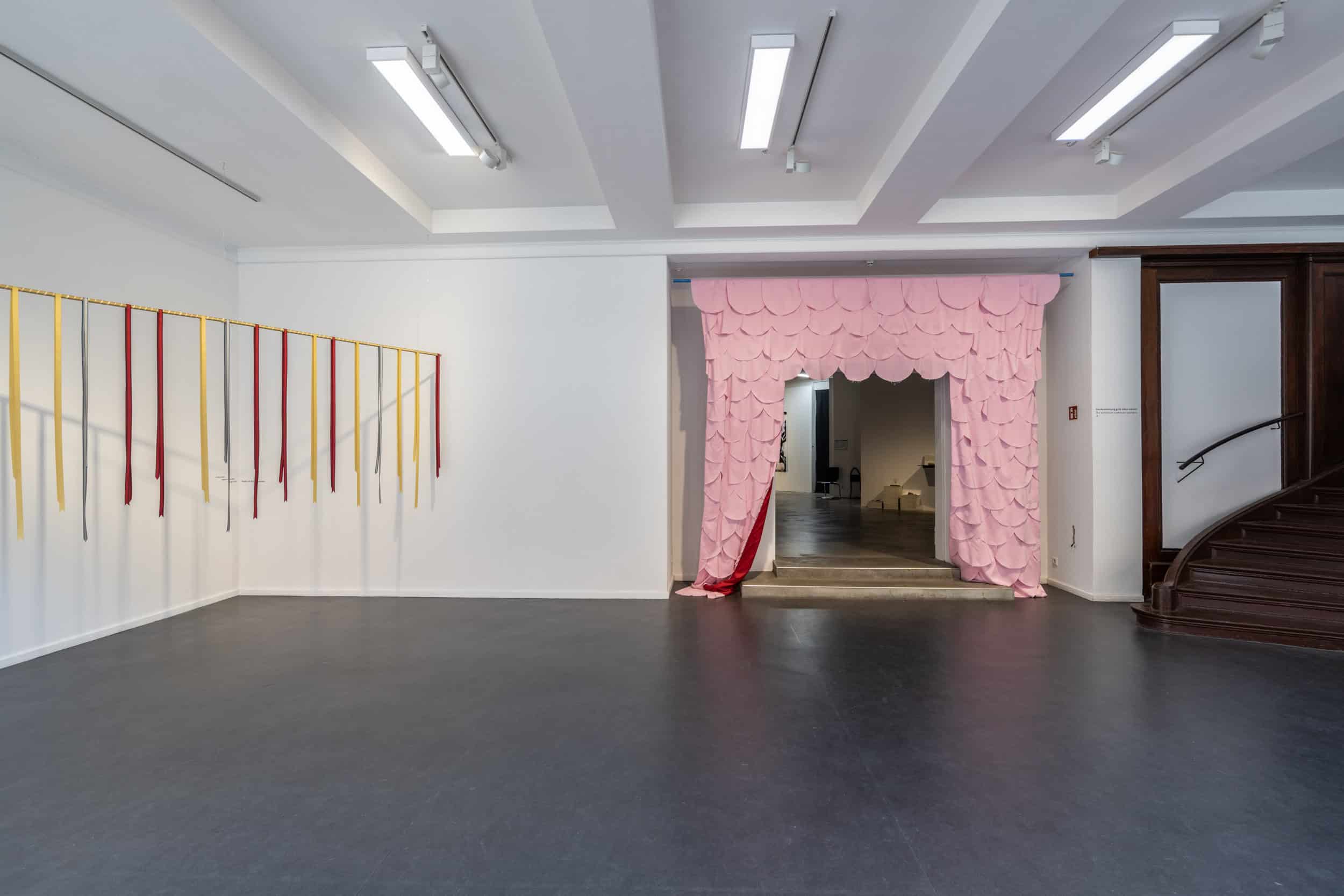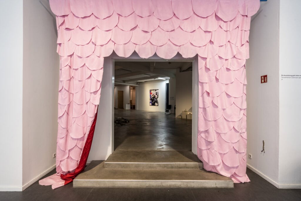 Die Ausstellung A stage she’s going through bildet den Auftakt des Projektes Becoming B und präsentiert eine Installation von Melanie Jame Wolf, die 2020-21 Stipendiatin im Künstlerhaus Bethanien war. Die Künstlerin erschafft eine Installation aus textilen ‘Thresholds’, aus Schwellen, die das Publikum dazu einladen, sich durch sie hindurch zu bewegen.