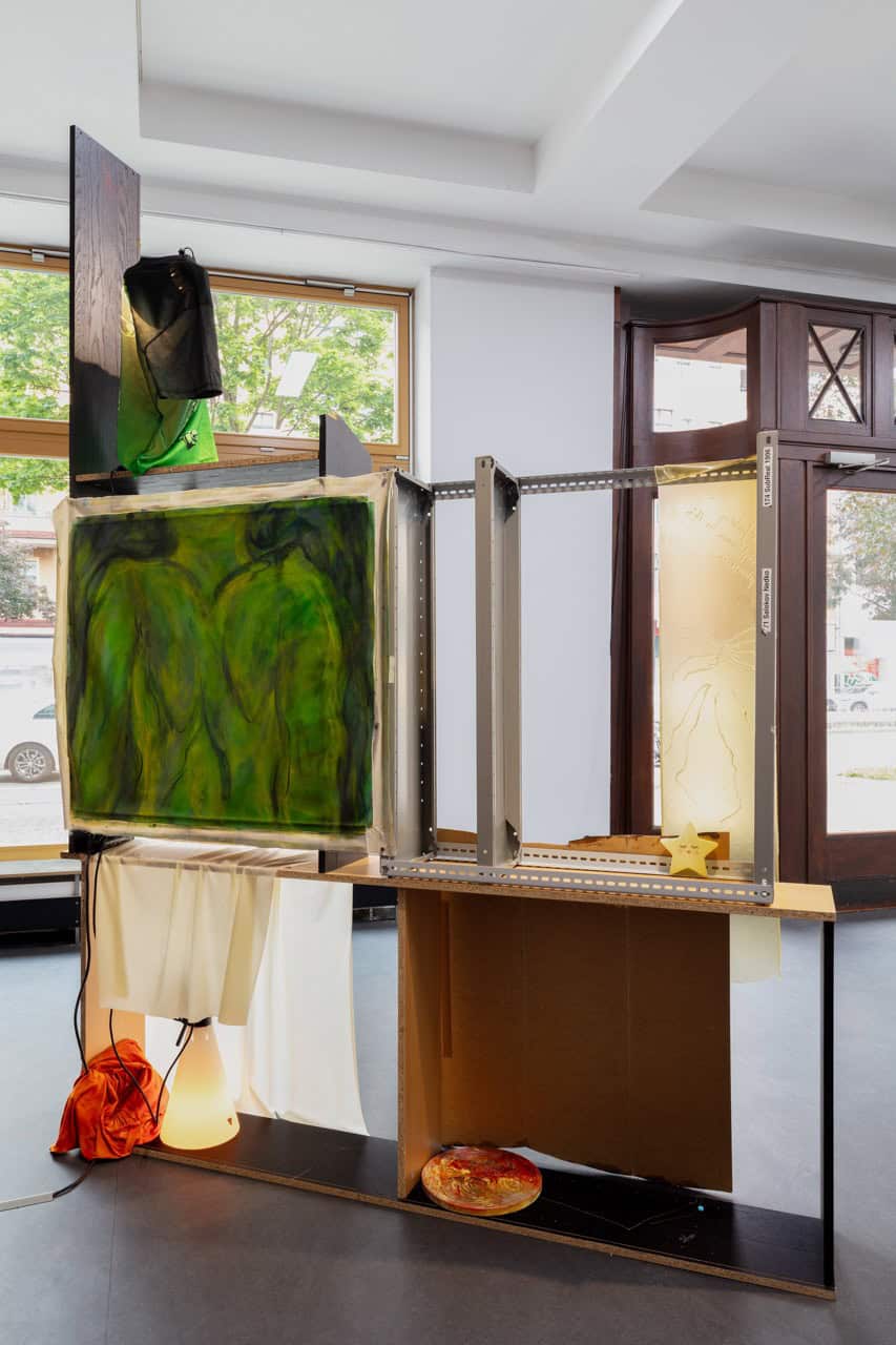 Eine Verschränkung, die sich ebenfalls in den poetischen Texten von Krys Huba wiederfindet: Diese oszillieren zwischen dokumentierten Erinnerungen und imaginierten Erzählungen. Sie entstehen häufig parallel zum künstlerischen Arbeitsprozess und eröffnen somit zusätzliche Bedeutungsebenen. Während der Vorbereitung der Ausstellung im Künstlerhaus Bethanien spielte ferner das gemeinsame Lesen und Bearbeiten poetischer wie theoretischer Texte eine zentrale Rolle. Textfragmente wurden zwischen Künstler*in und Kuratorin geteilt und Sprache wurde so zu einem weiteren Material – sie erzeugt Resonanzen, lässt Leerstellen sprechen und zieht Verbindungen zwischen Bild, Körper und Narration. Während der Ausstellungsdauer kollaboriert Krys Huba mit Performer*innen, Künstler*innen und Musiker*innen, um performative Momente zu schaffen, in denen sowohl die Texte, als auch die künstlerischen Werke aktiviert werden.