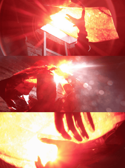 Die Ausstellung SUNBURST von Amélie Laurence Fortin im Künstlerhaus Bethanien ist das Ergebnis monatelangen Experimentierens mit Solarenergie. Mit einer roten Folie und Objekten, die sie in der Küche finden konnte, inszenierte die Künstlerin eine Performance, in der sie mit den Lichtstrahlen spielte, die durch das Fenster in den Dachboden einer ihr unbekannten Wohnung eindrangen – um später mit einer Kamera an diesen Ort zurückzukehren, und um die Videoarbeit SUNBURST zu produzieren.