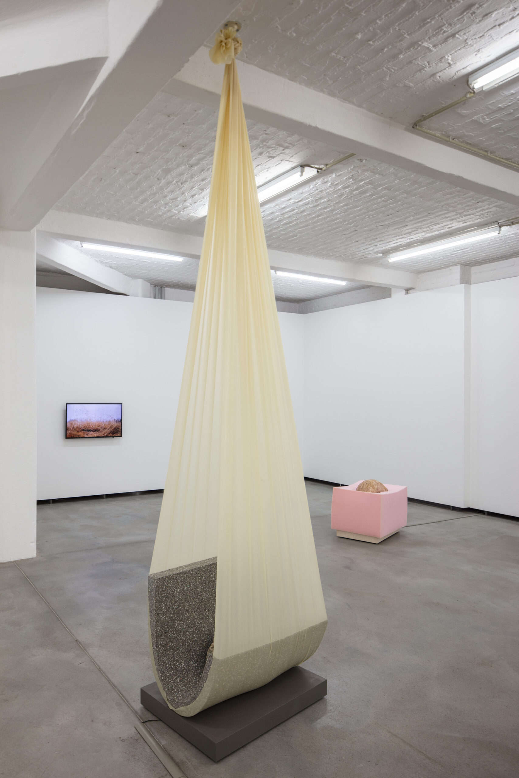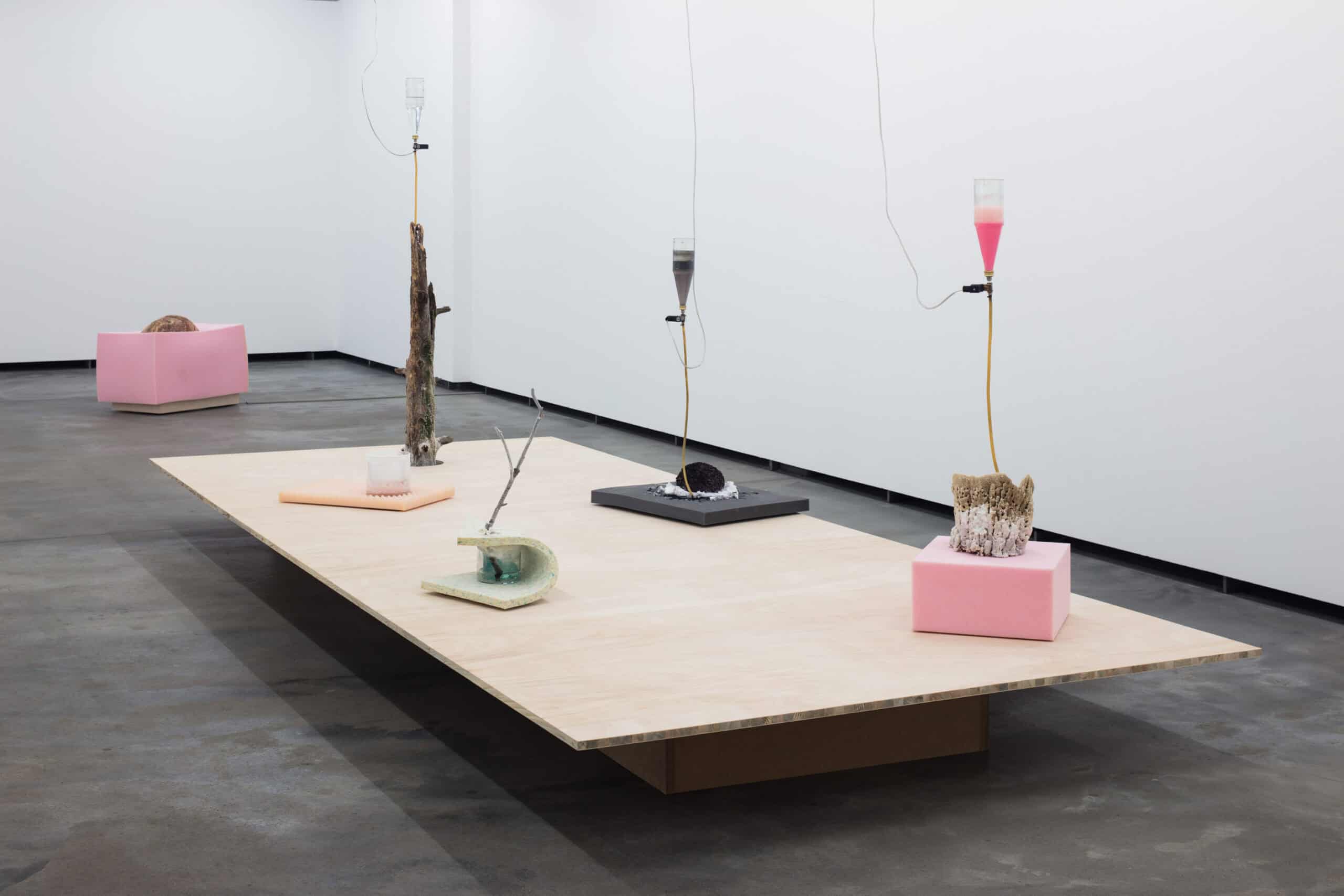 In ihren raumgreifenden Installationen und Interventionen thematisiert Anna Rún Tryggvadottir das Spannungsfeld zwischen Natur und dem von Menschen Geschaffenen. Sie fragt nach möglichen alternativen Erzählungen zur vorherrschenden westlichen Vorstellung, dass Menschen über die Natur regieren und unser Dasein außerhalb der natürlichen Welt zu betrachten sei. Für ihre Arbeit werden Situationen geschaffen, in denen technologisch angetriebene Systeme die kinetischen und zyklische Verhalten natürlicher Elemente ermöglichen und erforschen. Ausgewählte Materialien befinden sich darin in einer ewigen Bewegung oder werden in eine gemeinschaftliche Geste gebracht. Mit An Ode – poriferal phases im Künstlerhaus Bethanien erhalten Besucher erstmals einen breiten Einblick in Tryggvadóttirs prozessbasierte Arbeitsweise. Mit ihrer Arbeit Garden (20017) konstruiert sie eine Topographie bestehend aus Transformationsprozessen, die das individuelle Verhalten ihrer Materialien abseits menschlicher Kontrolle in den Vordergrund stellt und den Raum bietet, ihrer eigenen undefinierten und verletzlichen Darbietung zu folgen. Unter dem Titel An Ode – poriferal phases wird eine Reihe von Objekten aus natürlichen und künstlichen Materialien präsentiert, deren performative Bandbreite oder Präsenz von leblosen bis hin zu verendeten Lebensformen reicht.