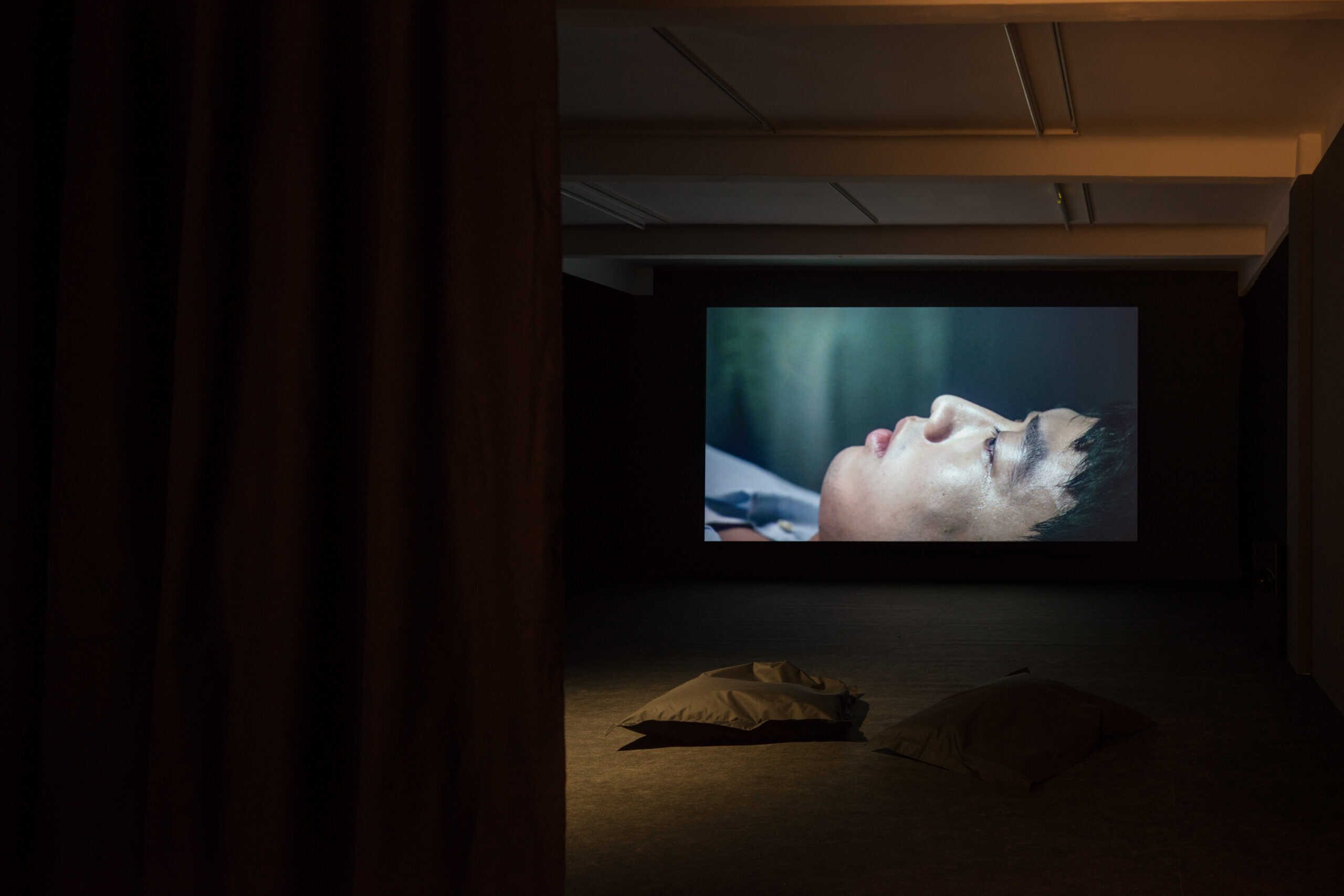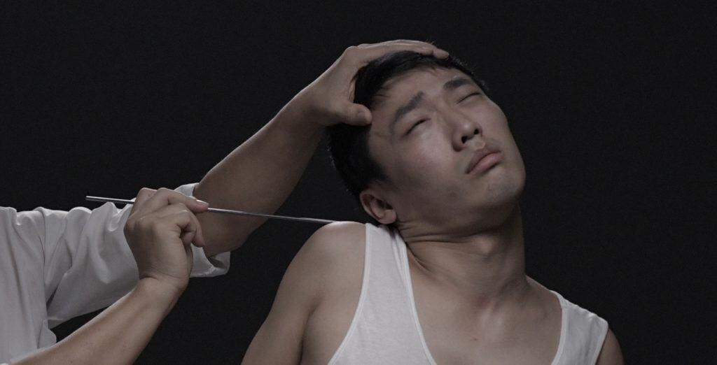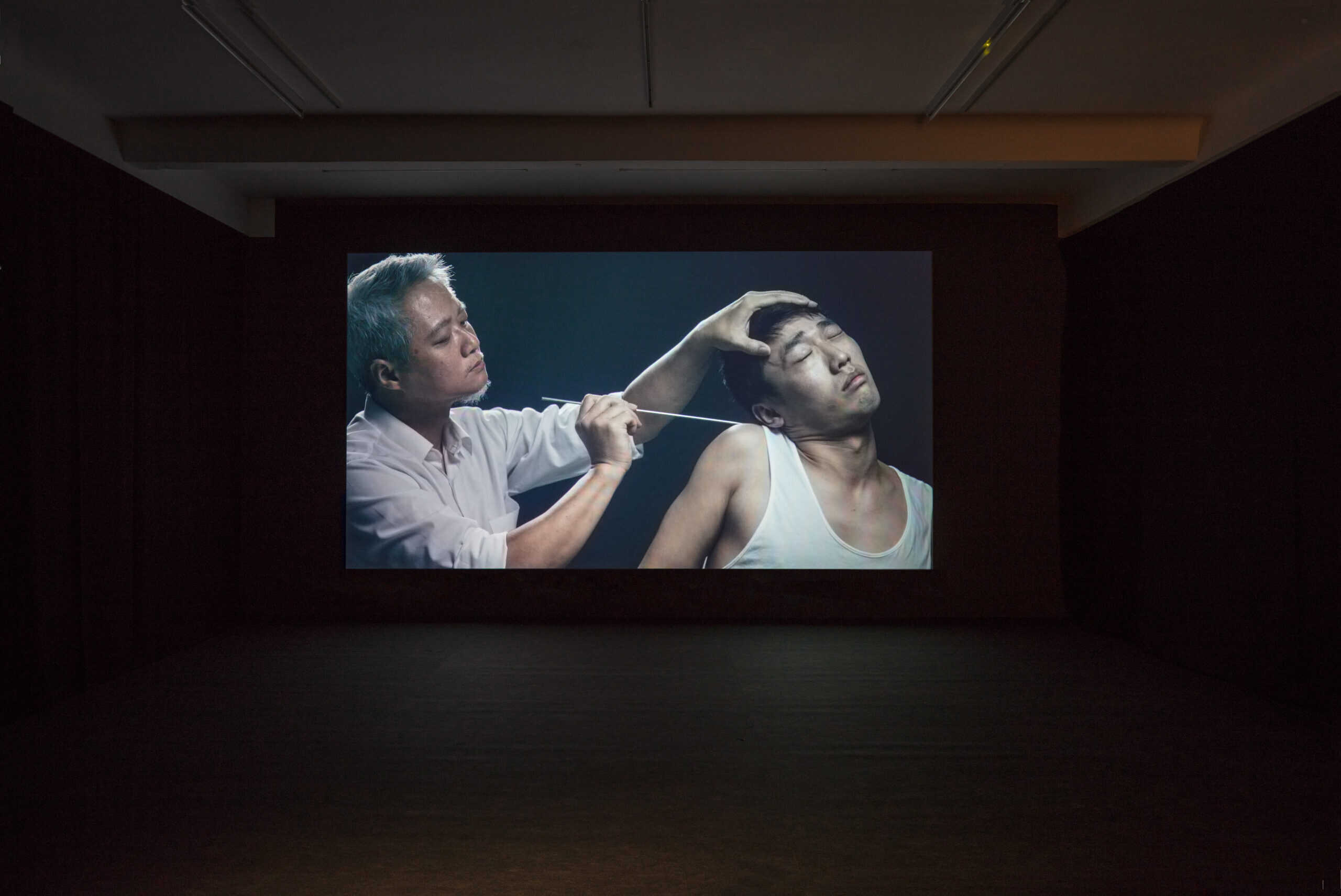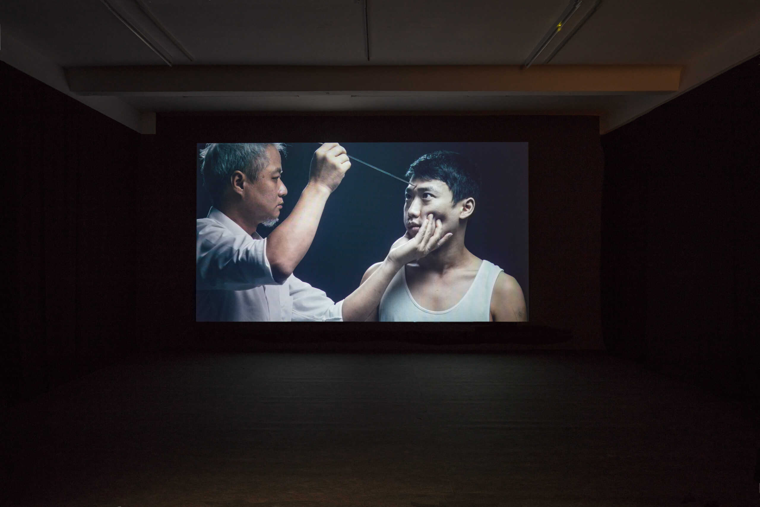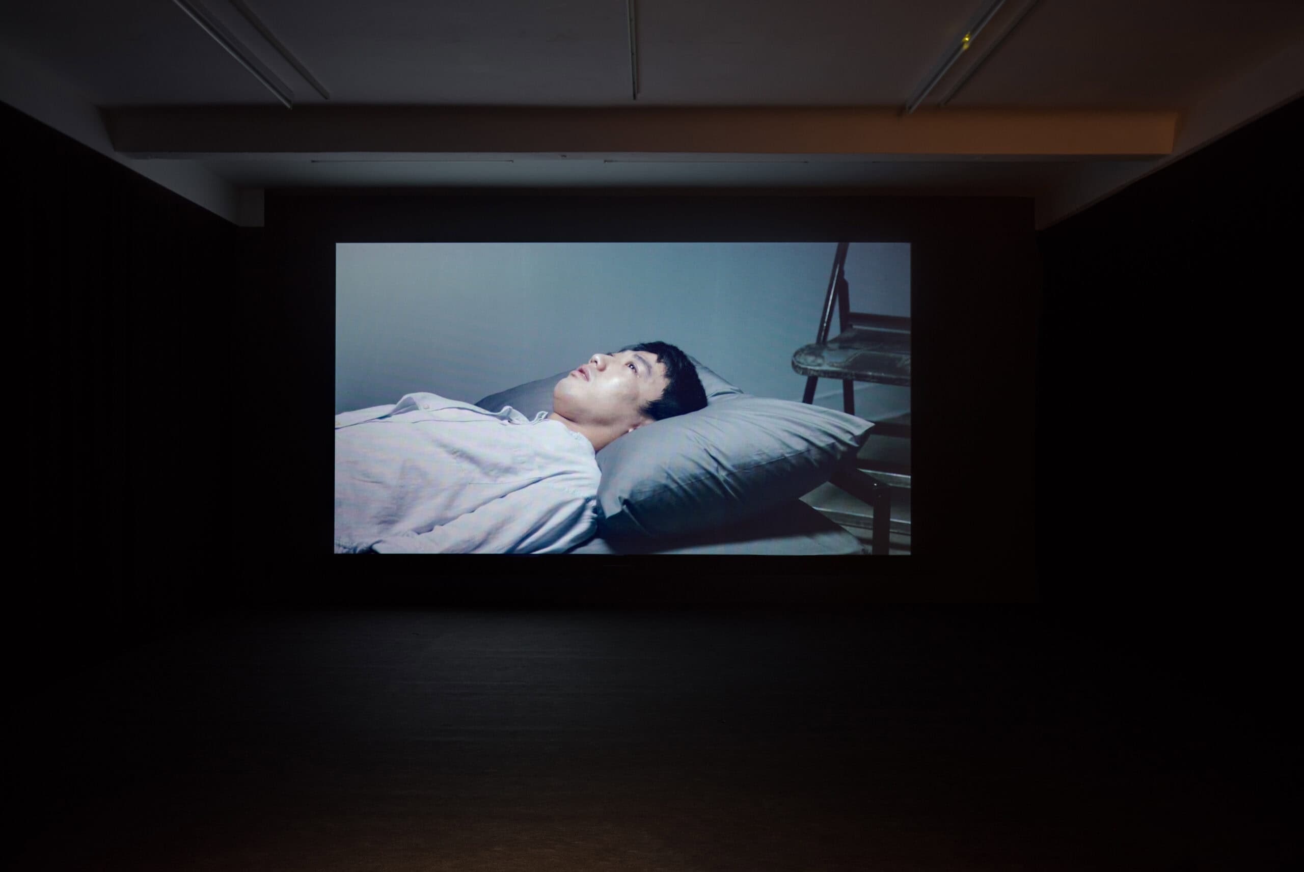 Chens neuer Film Spear, der seiner Ausstellung den Titel verleiht, wird im Künstlerhaus Bethanien Premiere feiern. Er ist eine Zusammenarbeit mit einem Freund Chens, einem Schauspieler mit einer dissoziativen Störung. Der Film beginnt mit einer individuellen Erfahrung und versucht, dieses Fragment einer traumatischen Erinnerung in eine künstlerische Form zu überführen. Gleichzeitig geht es auch um Hypnose. Der Film entfaltet eine kombinierte Erfahrung, die mit Realität und Fiktion, dem Gespenst des Traumas und der fragmentierten Erinnerung verwoben ist. Trauma und bewegtes Bild sind hier ein- und dasselbe: sie verflechten sich permanent und treten ganz plötzlich auf.