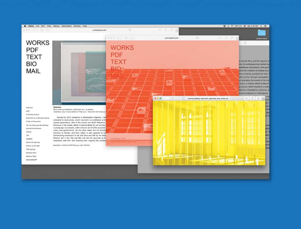 Chou präsentiert zwei Projekte aus den vergangenen Jahren sowie ein aktuelles Projekt. Der ausufernde Titel der Ausstellung stellt dabei die Verbindung zu den unterschiedlichen, materiellen wie immateriellen Elementen her, die in der Ausstellung präsent sind. Molyneux resultiert aus Chous Studium und Neuinterpretation von Werken des Künstlers Geoff Molyneux, deren Ergebnisse Chou kontrapunktisch zuerst im fernöstlichen Taiwan öffentlich präsentierte. A Working History, ein Projekt, für das der Künstler Kleinanzeigen aus Zeitungen verwendete, entstand in Zusammenarbeit mit einem Texteschreiber. Beide Projekte entwickeln sich ausgehend von den Lebensgeschichten anderer Menschen, die der Künstler transformiert, um die sozialen und institutionellen Realitäten herauszustellen, mit denen die jeweiligen Individuen konfrontiert sind. Die neuste Arbeit trägt den selben Titel wie die Ausstellung und basiert auf drei, von Chou festgestellten, sich permanent abwechselnden psychologischen Bedingungen, denen das Individuum im gesellschaftlichen Rahmen ausgesetzt ist: Agitation, Beten, Ruhe bewahren.