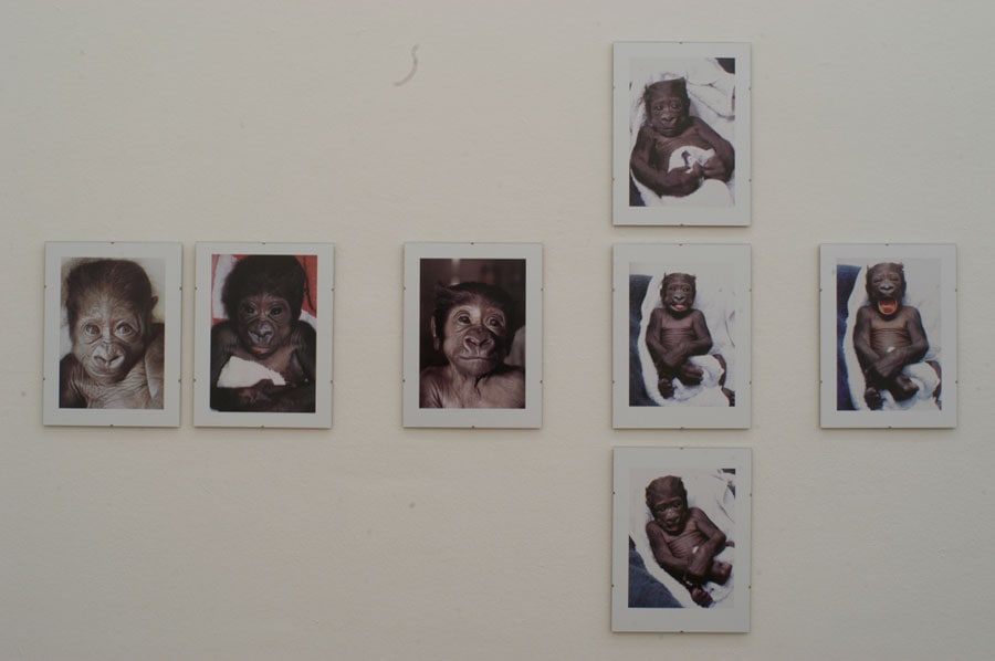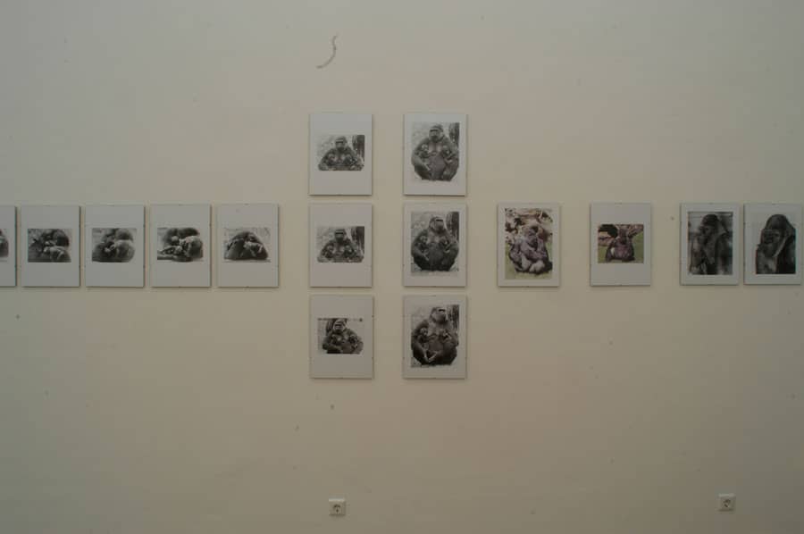 Cor Dera hat für seine im Künstlerhaus entstandene Arbeit nicht nur im Berliner Zoo recherchiert. Er hat auch Zugang zu dem umfangreichen Bildarchiv des dortigen Verantwortlichen für Menschenaffen, Raimon Opitz, erhalten.