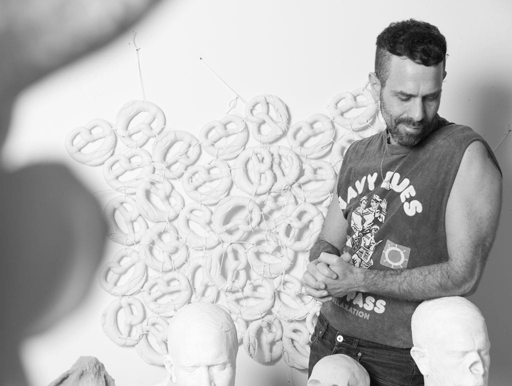 Auf oftmals provokante Weise thematisiert der Künstler kollektive Verantwortung, Rassismus oder den alten und neuen Rechtspopulismus, ebenso wie eine sich in Routine erschöpfende Erinnerungskultur oder die aktuelle politische Situation in Israel und Palästina. Dabei spielen Körper und Sexualität, stereotype historische und Gender-Zuweisungen eine zentrale Rolle und sind Stilmittel zum Ausdruck seiner dezidierten Ablehnung jeglicher Form von Unterdrückung und Ausgrenzung.