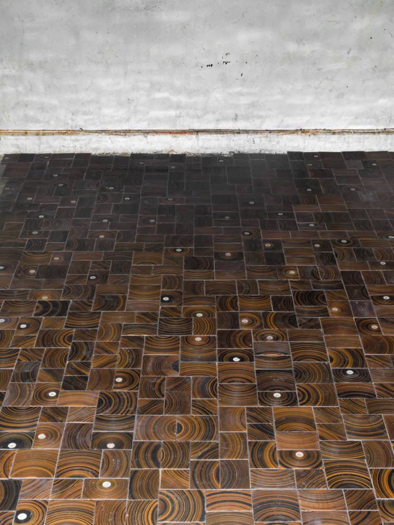 Gregor Hildebrandts Installationen und Objekte feiern das Prinzip der Addition in Schönheit und sind, obgleich keine Hörstücke im eigentlichen Sinn, in gewisser Weise musikalisch. Hildebrandt nutzt diverse Speichermedien wie Schallplatten, Ton- und Videobänder sowie Kassetten und CDs und kreiert daraus schnörkellose, visuell reizvolle Werke, die gleichzeitig auf nostalgische Weise an unterschiedlichste musikalische Kreationen erinnern. Der Künstler lässt ordnen, abrollen, aufwickeln, stapeln und kombinieren und verbindet in einem bildkünstlerischen Schaffensprozess eine Vielzahl von erscheinungsgleichen Einzelteilen zu einem neuen Ganzen.