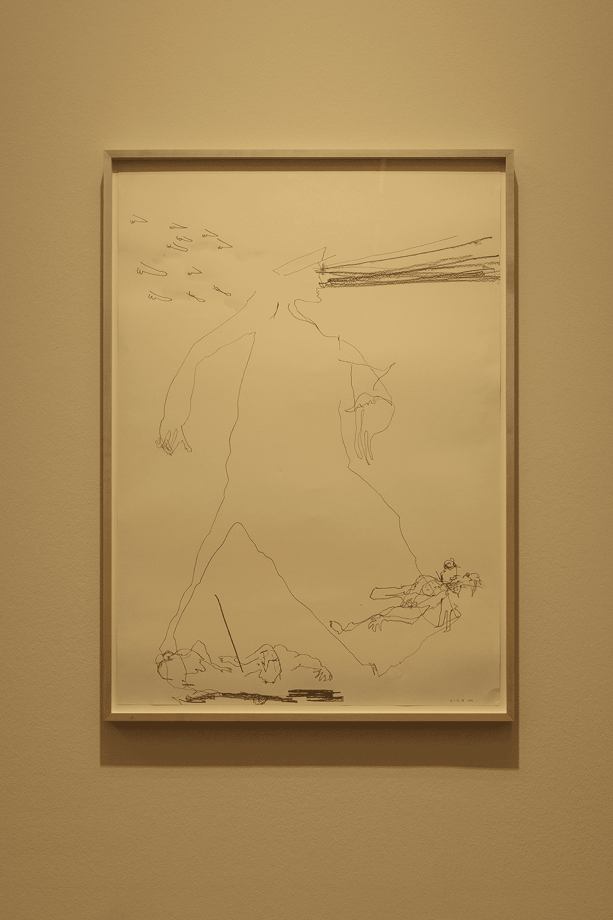 Allein die Verdrängung produziert kein Geheimnis. Erst die nach innen gerichtete Suche – die intensive Auseinandersetzung mit dem Selbst und dessen Positionierung in der Welt – ermöglicht eine neue Zeichensprache. Die Zeichnungen von François Lemieux (*1979 in Québec, Kanada) sind das Erzeugnis eines solchen In-sich-Hineinblickens. Gespeist von Bildern politischer und gesellschaftlicher Gewalt, vermittelt über Fernsehen, Internet, Soziale Medien und Zeitschriften, häuft sich in unserem kollektiven Gedächtnis ein Archiv der Grausamkeiten an. Dort beeinflusst es auch die Art und Weise, wie wir die Welt sehen, wie wir handeln und wie wir miteinander umgehen. Mit verbundenen Augen lässt Lemieux all die Erinnerungen an die Bilder, die allgegenwärtig auf ihn einprasseln, zeichnerisch auf das Papier oder direkt auf die Wand bluten. Dabei entstehen Gebilde, die sich mal mehr, mal weniger konkret bestimmten Ereignissen zuordnen lassen. Oftmals ergeben sich so auch abstrakte Psychogramme, deren nervöse Strichführung die Schrecken lediglich erahnen lassen. Dem Künstler geht es dabei nicht um eine reine Reproduktion dieser medialen Bilder, sondern auch um die Entwicklung einer neuen, subjektiven Formsprache für das Propaganda-Vokabular faschistischer Regime.