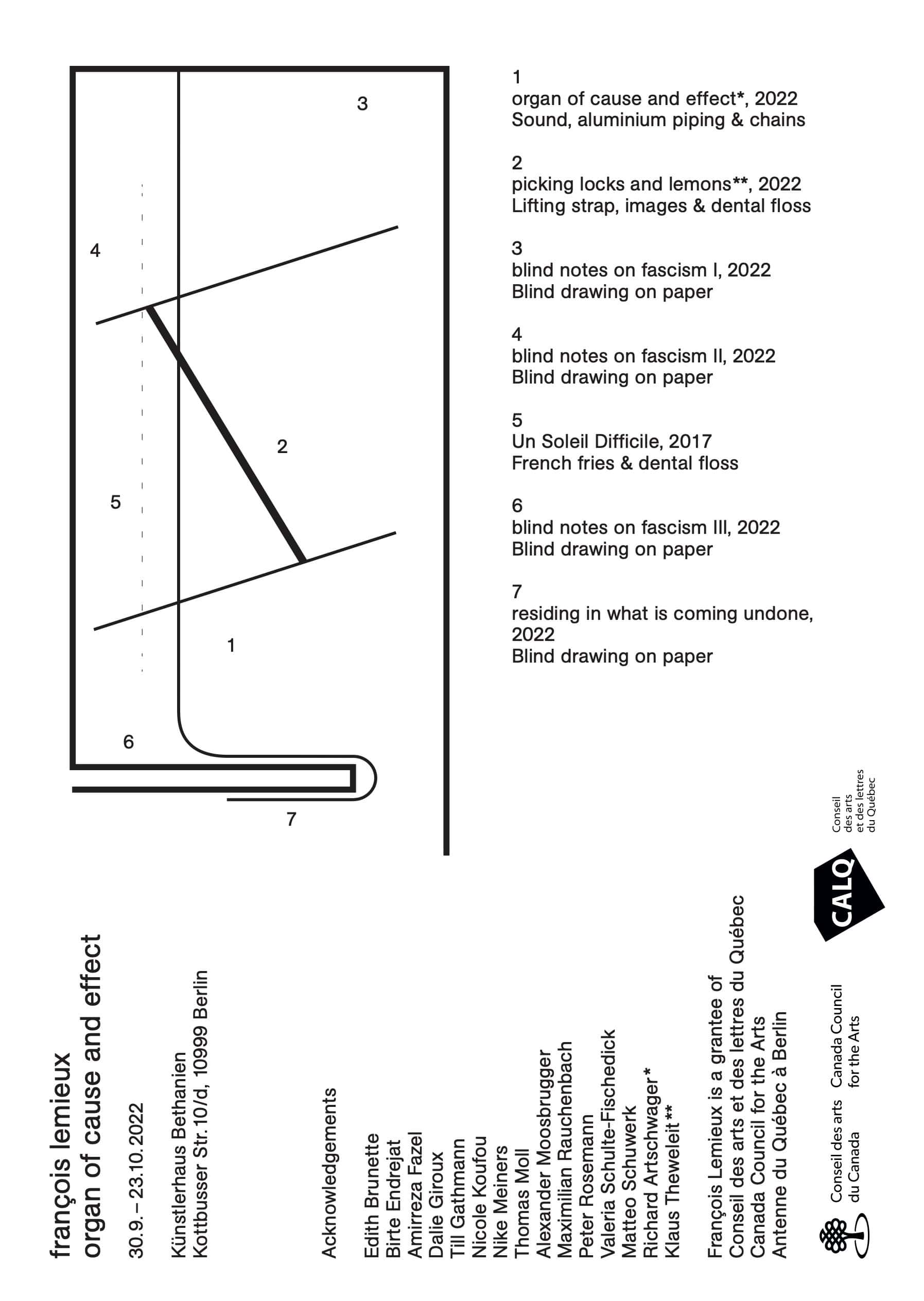 Francois Lemieux ist Stipendiat des Conseil des arts et des lettres du Québec, des Ministère des Relations internationales et des la Francophonie du Québec und der Vertretung von Québec in Berlin.
