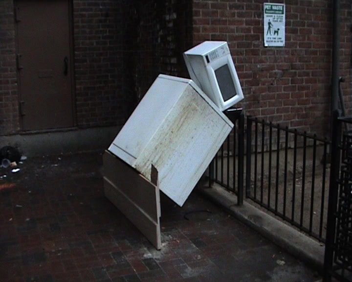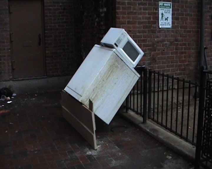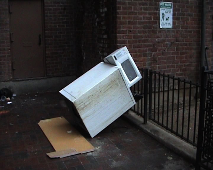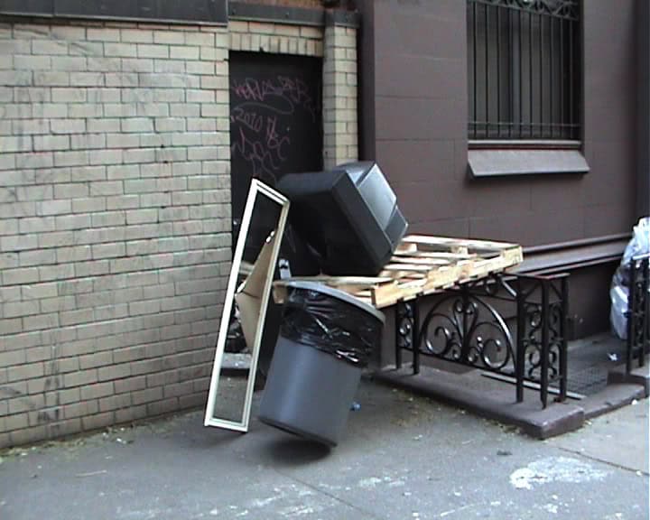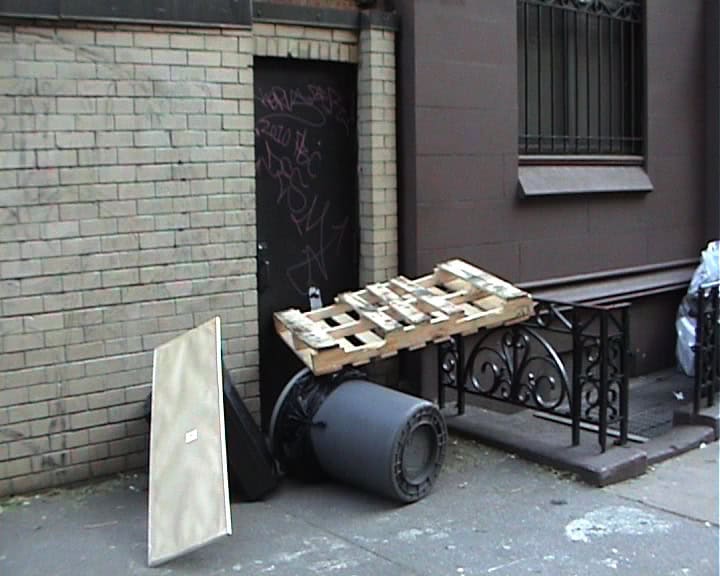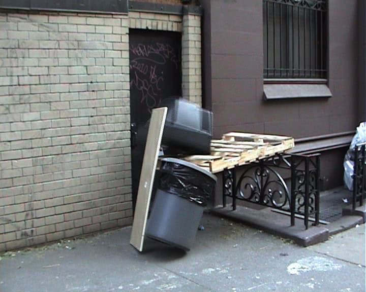 “NYC 2010” ist eine Fortsetzung der Videoarbeit „Berlin 2009“ des französischen Künstlers Mickaël Marchand und zeigt die Dokumentation einer Serie ephemerer Installationen im Straßenraum von New York City. Mit Hilfe gefundener Objekte und Möbelstücke baut Marchand Konstruktionen, die nur für Augenblicke halten und auf teilweise humoristische Weise über Balance, Stabilität und Fall sprechen. In unterschiedlichen Varianten beobachtet der Zuschauer immer wieder dieselben drei Werkstadien einer Installation: die aufgebaute Struktur, den Moment des Fallens und die kollabierte Komposition.