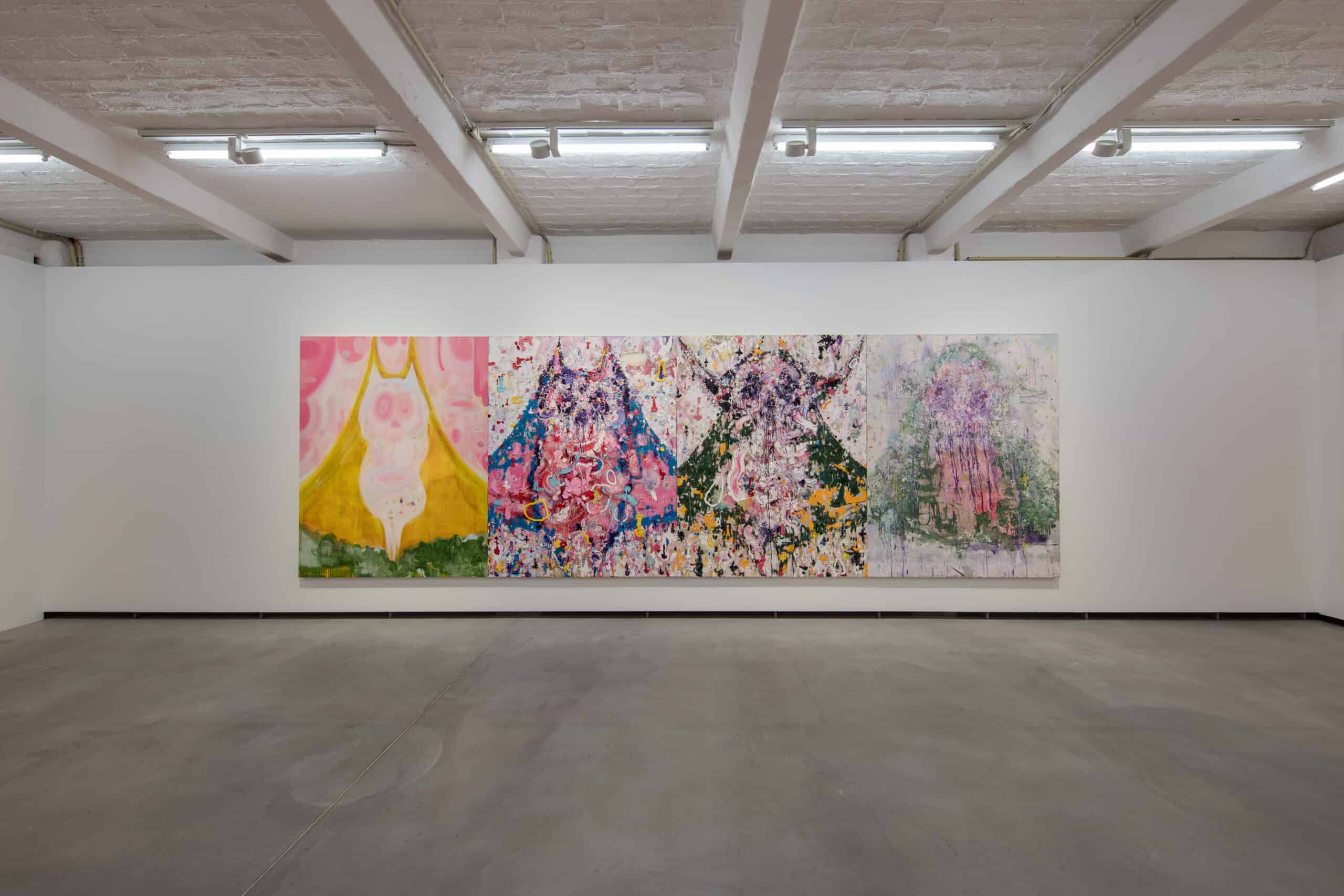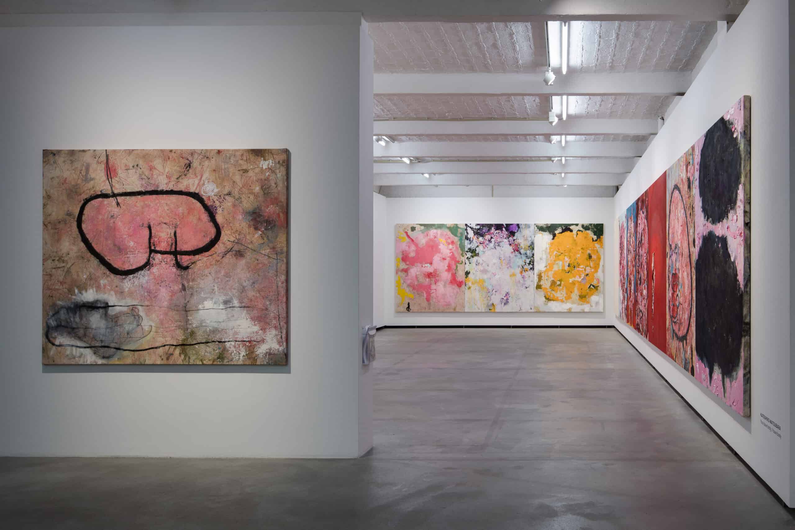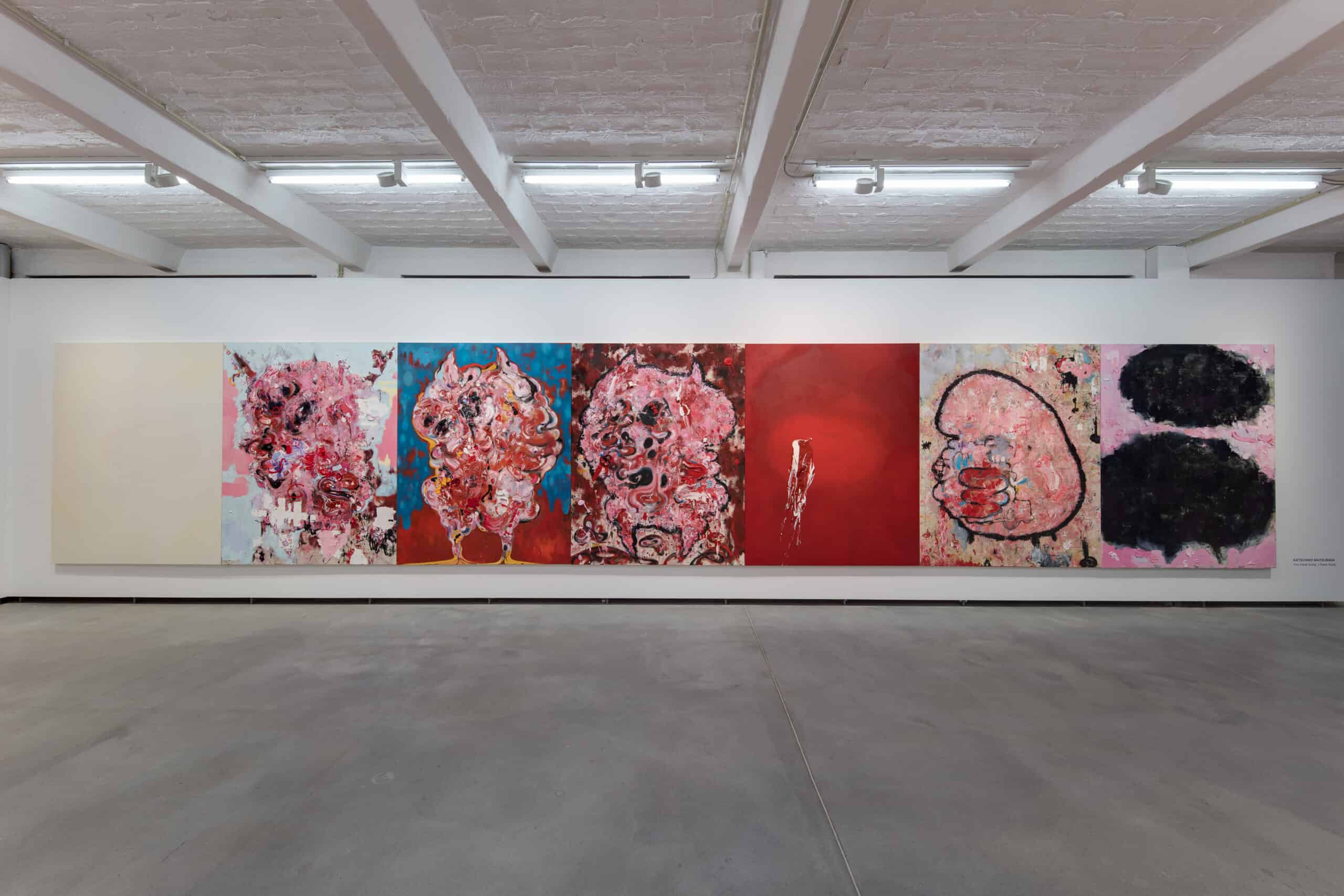Bestehend aus dicken Schichten pastos aufgetragener Ölfarbe, provozieren Katsuhiko Matsubaras großformatige Leinwände bei seinem Publikum oft eine intensive Reaktion. Durch die wiederholte Verwendung von Rosa, Pink und Rot – an Eingeweide und blutgefüllte Venen erinnernd – hebt er die Körperlichkeit seines Mediums hervor. Dies führt zu Oberflächen, die gleichermaßen Ekel und Faszination erzeugen. Matsubara bezieht sich stark auf die Mythologie und das Konzept des Animismus. In der Zuschreibung einer lebenden Seele zu Pflanzen, Objekten und sogar natürlichen Phänomenen versuchen seine Gemälde Kreaturen wie Embryonen, Tiere, Monster oder Geister zu formen.