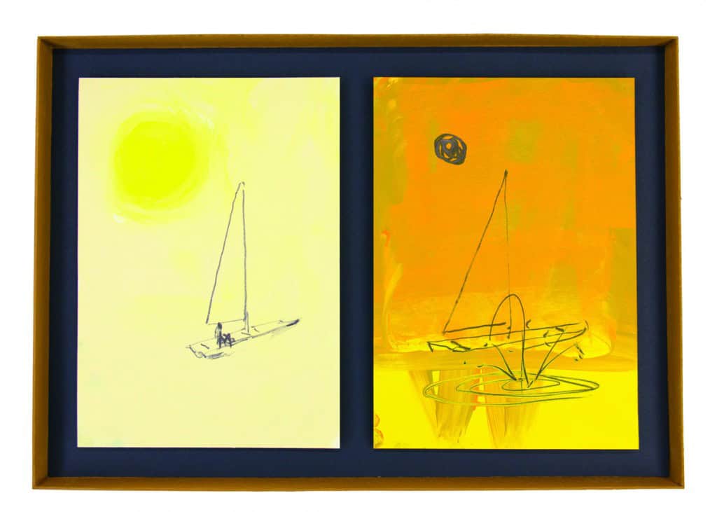 In den letzten Jahren arbeitete Kühnemann – inspiriert von der Ästhetik seiner Kindheitsfotos – an großformatigen Bildern auf Holz, in denen er Versatzstücke aus Fotos transformierte und zu etwas Neuem zusammensetzte, wobei es ihm weniger um das Erzählerische als um die malerische Transformation von Identität ging. Die in Malerei, A4 und ein paar Dinge gezeigten Arbeiten greifen diesen Transformationsprozess auf und führen ihn fort; nicht mehr Familienalben dienen als Vorlage, sondern bestimmte Formen, Farben und Objekte, die sich durch mehrere Arbeiten wie ein roter Faden ziehen. Entstanden sind eine Reihe von Boxen, die als Rahmen für Werkserien dienen – alle mit einem bestimmten Objekt auf A4-Papierbögen in Öl gemalt. Die Bilder verdeutlichen die für Kühnemann typische Vorgehensweise: das Spiel mit Möglichkeiten, die Schaffung von Unerwartetem und die Durchbrechung von Routinen.