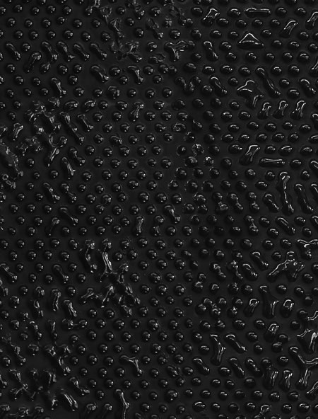 In Berlin hat Samira Hodaei alte Kinositze aus Holz zusammengetragen und diese mit einer aus schwarzen Tschadors (die Tücher, mit denen Frauen im Iran sich in der Öffentlichkeit verhüllen) gebildeten ‚Leinwand‘ im Ausstellungsraum installiert; eine flackernde Licht-projektion erinnert an das Licht der im „Cinema Europe“ längst erloschenen Projektoren. Ergänzt wird das Ensemble durch kleinformatige Gemälde, entstanden in der spezifischen, von Hodaei entwickelten Maltechnik: die Künstlerin verwendet Glasmalfarben aus dem Iran oder der Türkei und tupft sie direkt aus der Tube auf den Untergrund auf, so dass aus den pixelartigen Punkten („dots“) ihre charakteristischen Frauenporträts entstehen.