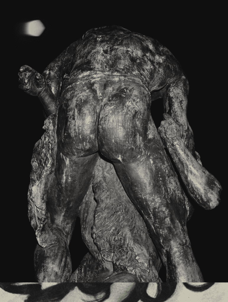 Beim Betreten der Ausstellung von Santiago Mostyn im Künstlerhaus Bethanien führt der Weg der Besucher*innen zunächst an einer Wandarbeit vorbei, die als „Rückseite“ der Hauptinstallation konzipiert ist. Die Wand ist mit Kopien von Seiten aus dem JET Magazine bedeckt, ergänzt durch die fotografische Arbeit Ghost/Monument (2020). Das Bild Ghost entdeckte der Künstler bei der Entwicklung von Negativen mit Aufnahmen aus Hoyerswerda (dessen Geschichte bis heute durch die fremdenfeindlichen Ausschreitungen vor 30 Jahren geprägt ist). Monument zeigt die Rückansicht einer Skulptur, die einst vor dem Schwedischen Nationalmuseum in Stockholm stand.