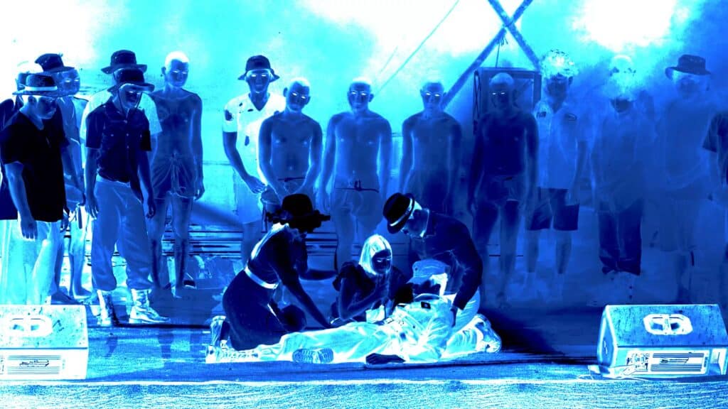 Die Arbeit thematisiert die Vergegenwärtigung von Historien und Geografien in filmischen Tableaus und sich auflösenden 3D-Scanning-Artefakten. Supasuthivech konzentriert sich auf den Mae-Klong-Fluss, der international als „River Kwai“ bekannt ist und seine Verbindungen mit der stillgelegten Thailand-Burma-Eisenbahn. Hier zeigt er auf, wie diese abgelegene Region in Kanchanaburi (Thailand) von ihrem Erbe abgekoppelt und in ein Spektakel für offizielle Interessen verwandelt wurde. Er lenkt die Aufmerksamkeit auf die marginalisierten asiatischen Arbeitskräfte, die am Bau der Eisenbahn beteiligt waren, und kritisiert die mangelnde Anerkennung ihrer Opfer. Unter den Arbeitern befanden sich 51.000 britische, niederländische und amerikanische Kriegsgefangene, 9.500 Australier und über 270.000 asiatische Zwangsarbeiter aus China, Burma, Thailand, Malaysia und Singapur. Durch die Gegenüberstellung von Riten und Gesten des Gedenkens veranschaulicht der Künstler, dass es trotz unterschiedlicher Herangehensweisen an den Umgang mit Verlust und Sterblichkeit einen universellen menschlichen Kern gibt, der sich nach Entfaltung sehnt. Darüber hinaus hinterfragt die Arbeit die kulturellen Auswirkungen historisch ungenauer Repräsentationen, wie etwa des Films „Die Brücke am Kwai“, und ihre Auswirkungen auf das lokale Handeln und Selbstwahrnehmen, etwa bei der Umbenennung eines Flussabschnittes.