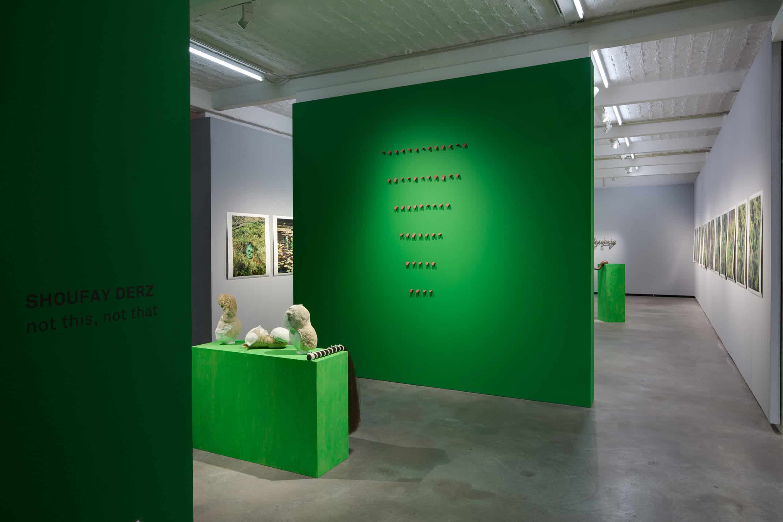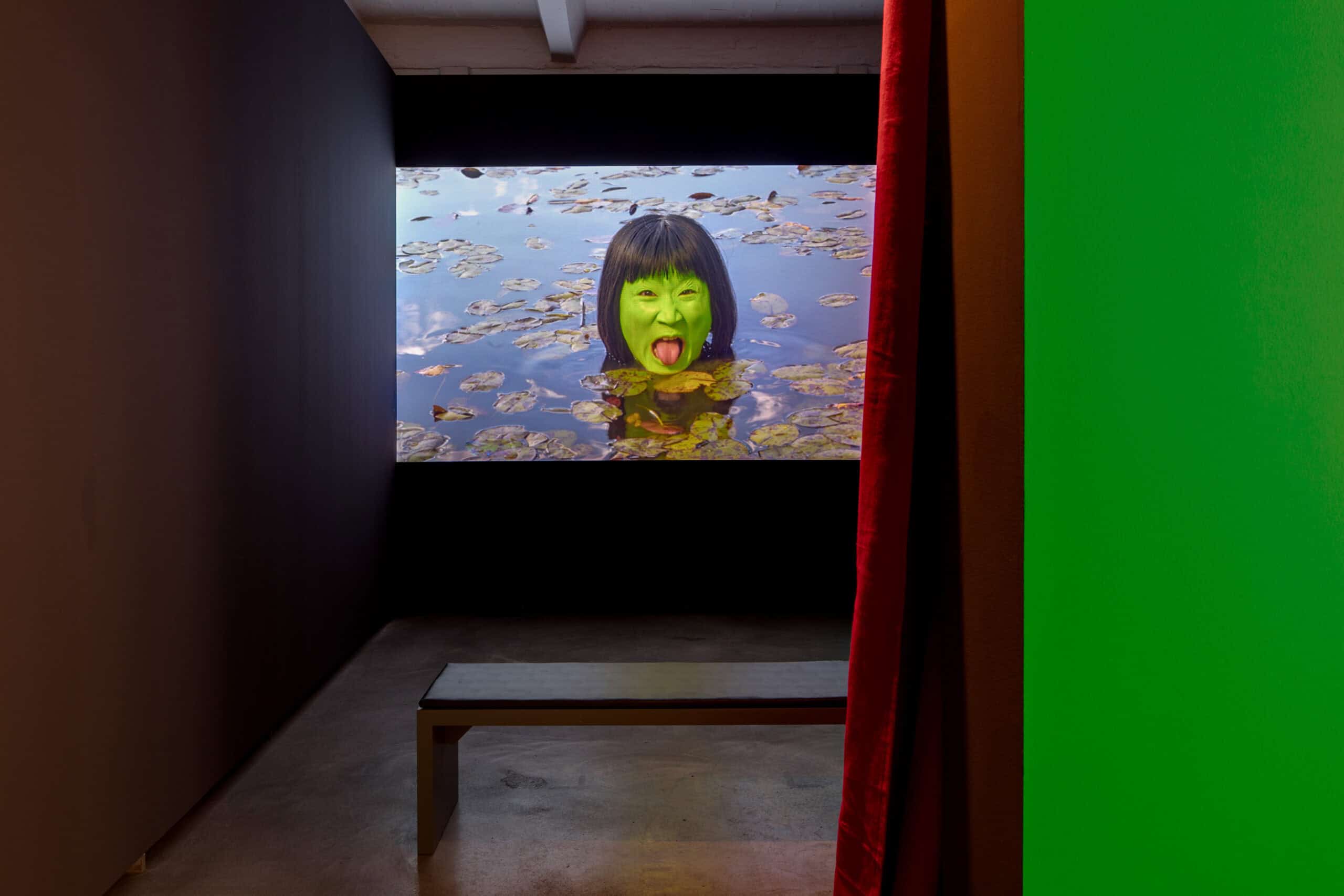 Die Ausstellung von Shoufay Derz im Künstlerhaus Bethanien umfasst die Genres Fotografie, Skulptur und Video und nimmt Bezug auf frühere Performances, die die Künstlerin im Manly-Dam-Reservat in Sydney realisiert hat. In ihnen forderte Derz die Teilnehmer*innen auf, sich grün anzumalen und als Aale „aufzutauchen“. Unter dem Titel „Loving the Alien“ ist die Performance inzwischen zu einem umfangreichen Foto- und Videoprojekt geworden, das Porträts von Freunden, ihrer Familie, Bekannten und Fremden zeigt, die an Derz’ „Aalritual“ teilgenommen haben.
