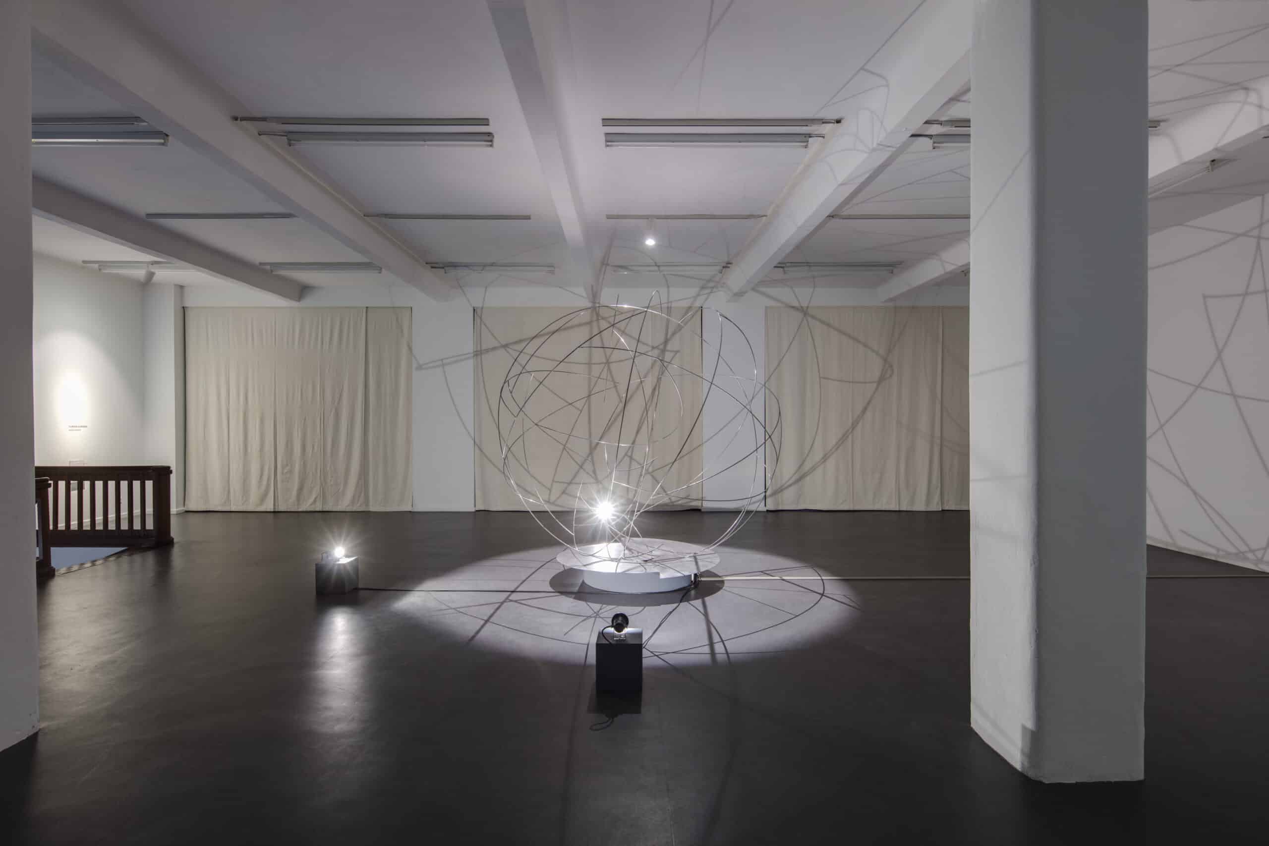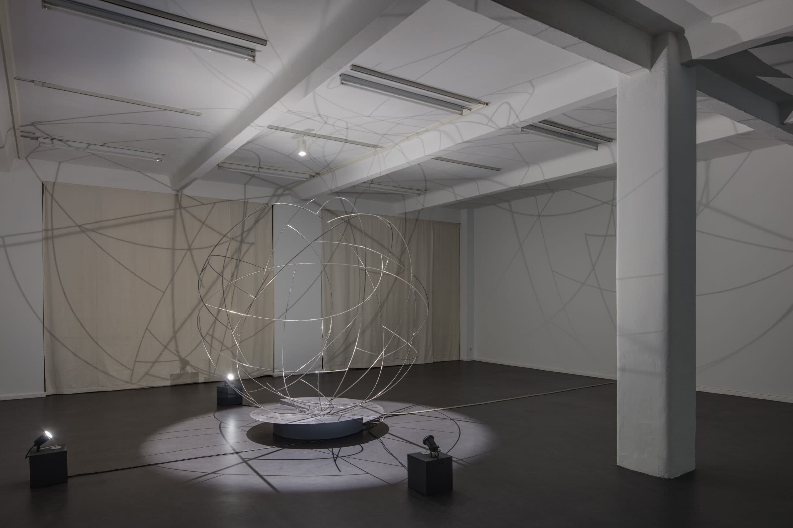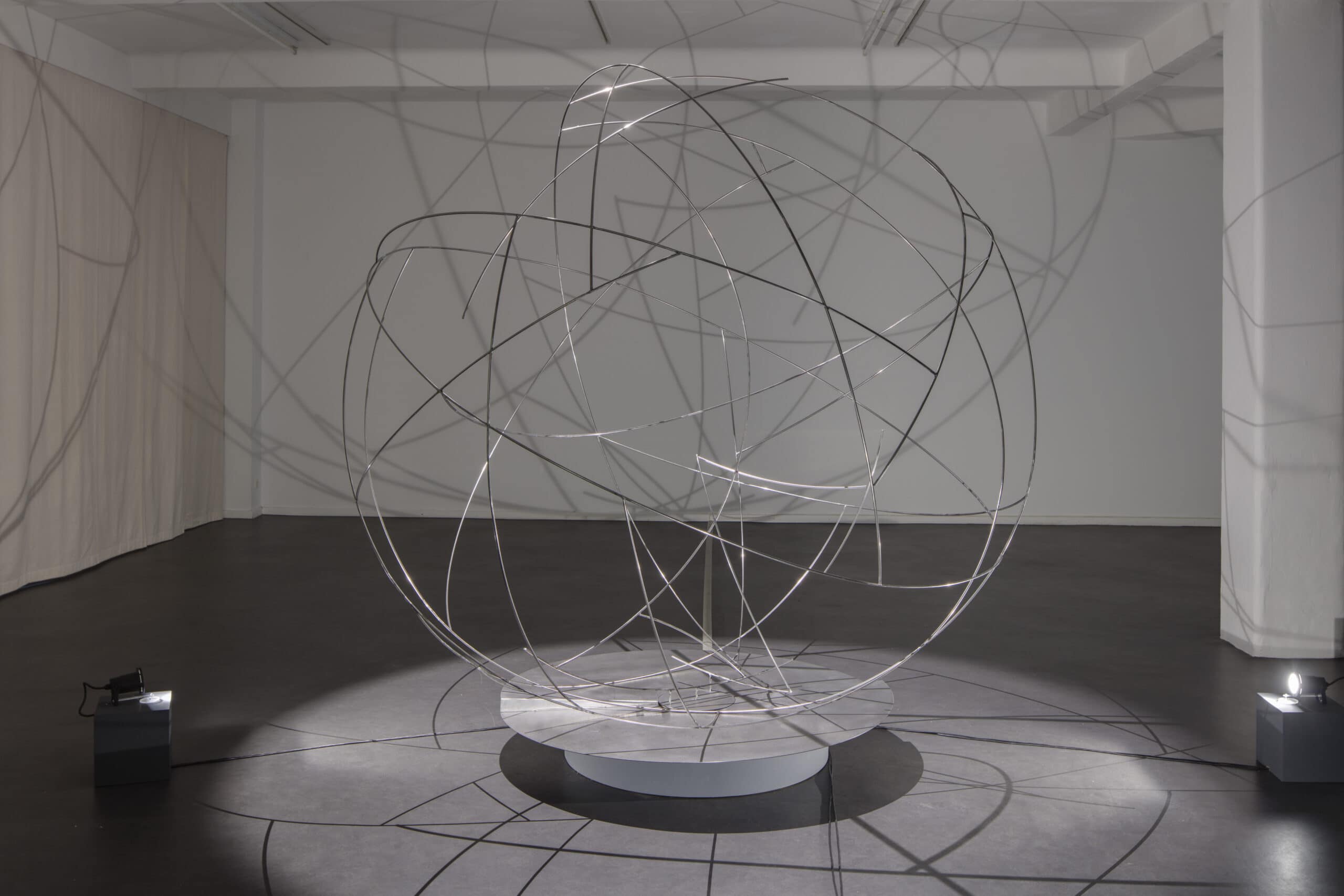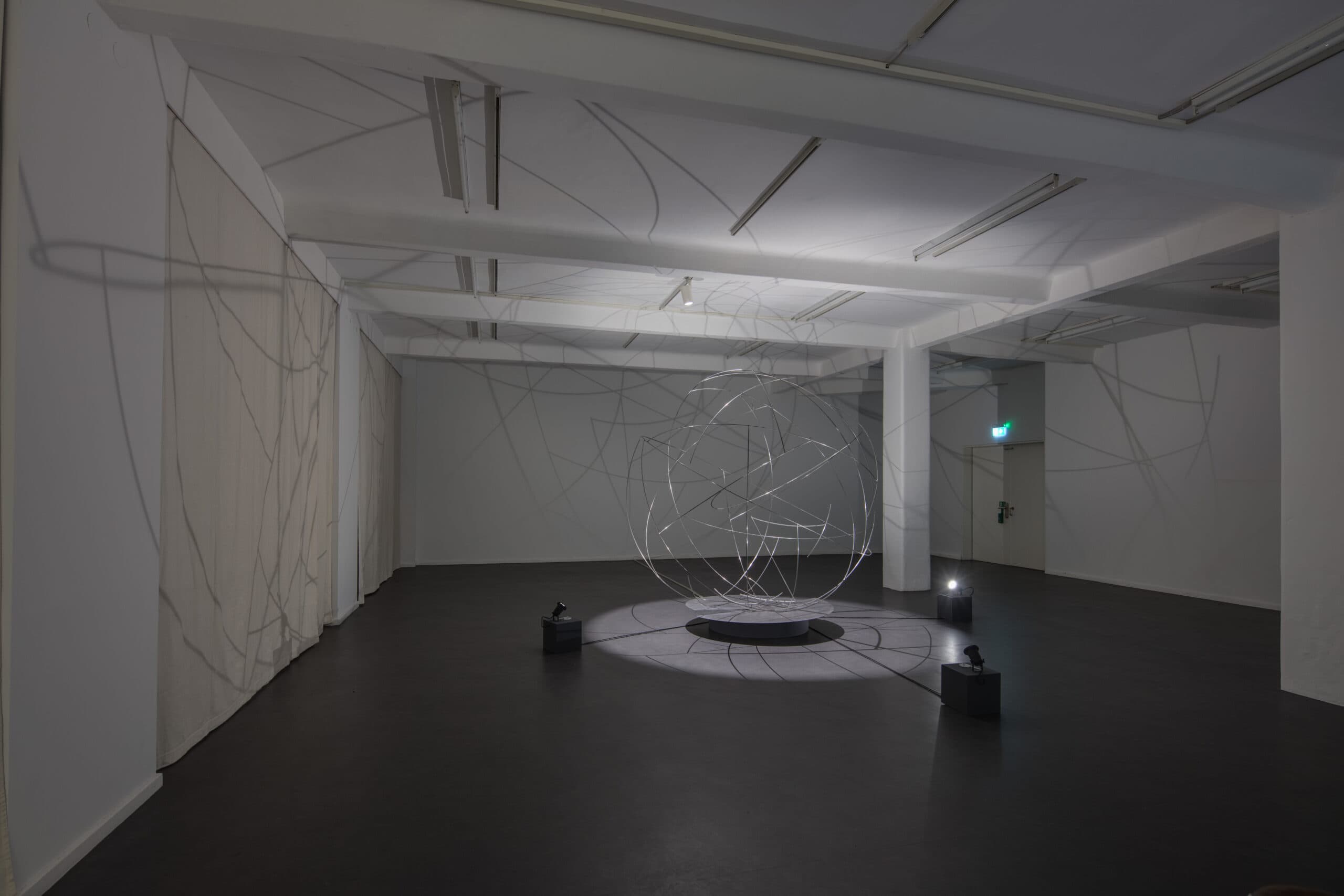In ihrer Einzelausstellung ambivalent im Künstlerhaus Bethanien setzt die Künstlerin ihr Interesse an der Visualisierung der Funktionsweise des Gehirns – worüber Wissenschaftler*innen immer noch wenig wissen – fort, indem sie das Gefühl darzustellen versucht, das der Ausstellung ihren Titel gibt. Ambivalenz wird als der Zustand beschrieben, in dem man widersprüchliche Gedanken oder Vorstellungen über etwas oder jemanden hat. Diese Ambivalenz war für die Künstlerin während ihres Aufenthalts in Deutschland, insbesondere während der Covid-19-Pandemie, ein immer wiederkehrendes Gefühl. Die langsame Bewegung der Skulptur, die aus einer punktuell beleuchteten Kugel aus gebogenem, glänzendem Stahl besteht, und die daraus resultierenden Schatten, die sich mit unterschiedlicher Geschwindigkeit verändern, können als Spiegelung von Sunadas verschiedenen Zeiterfahrungen in Berlin gesehen werden. „Die Wahrnehmung der Zeit ist nicht einheitlich oder universell“, sagt die Künstlerin.